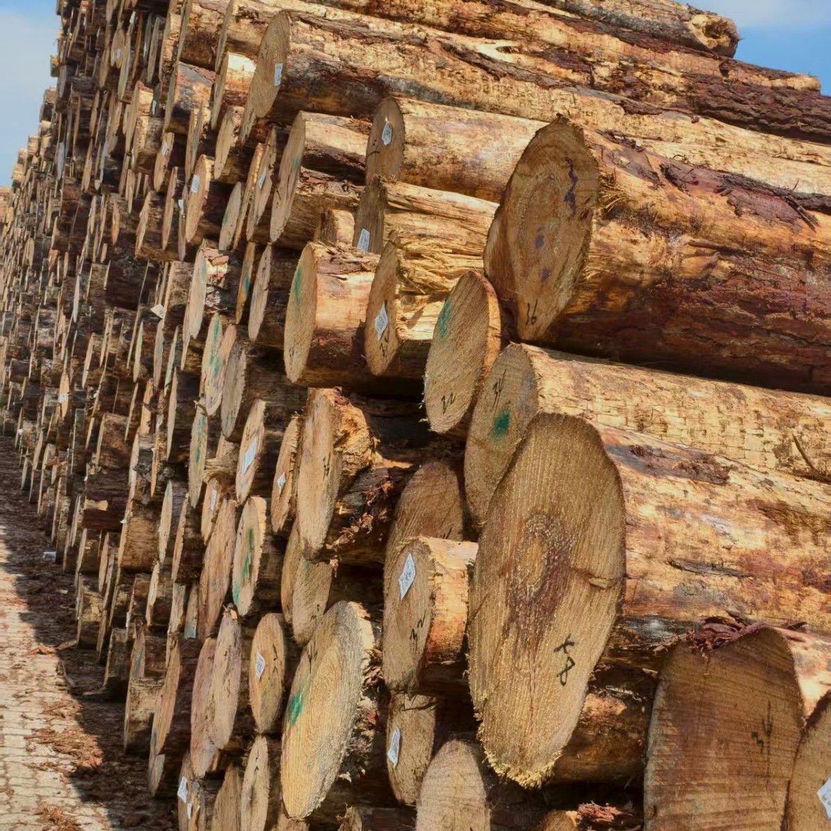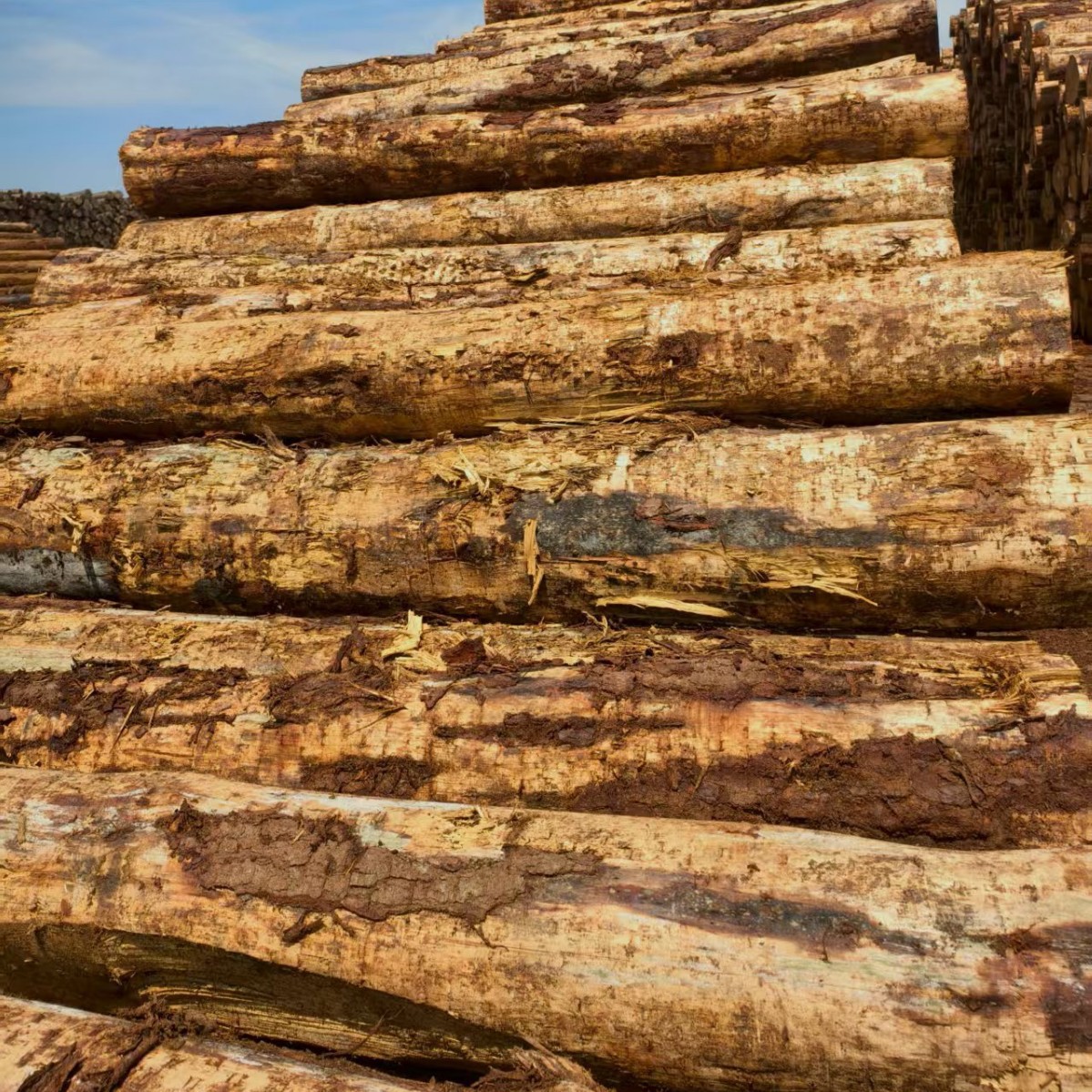 新西兰辐射松原木供应防腐防潮无节少疤工程材可加工木方薄板圆柱