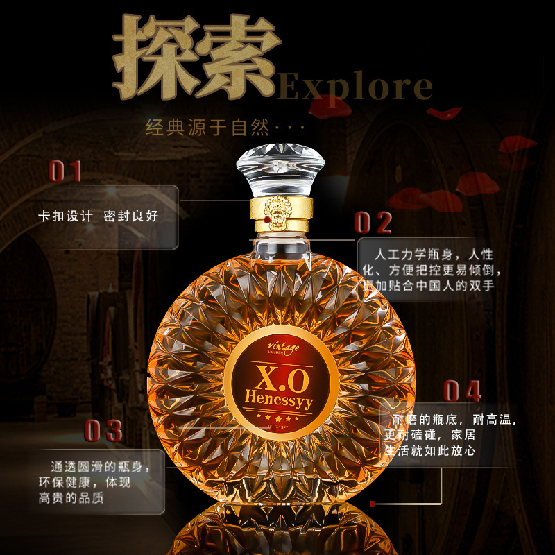 洋酒瓶高档伏特瓶加厚玻璃威士忌白兰地酒瓶500ml自酿酒分装瓶