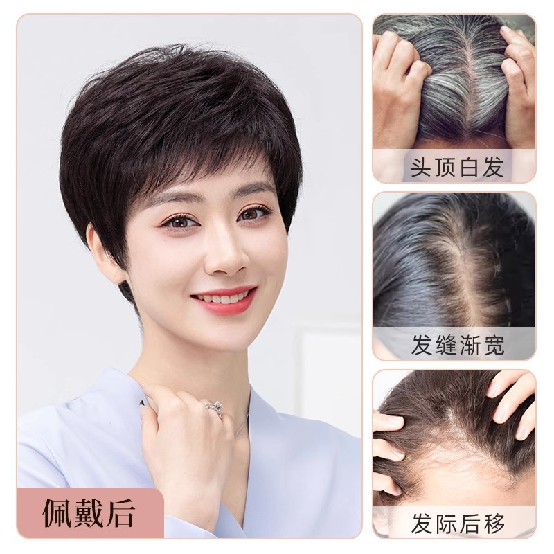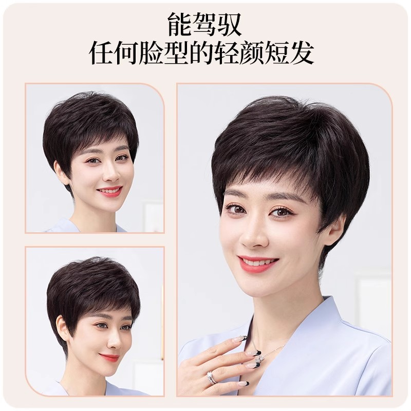 科技记忆发女士假发遮白发轻薄透气短纹理全手织发套假发女lolita