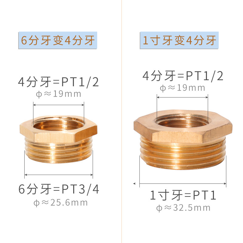 过滤器变径铜补芯接头6分转4分 1寸变4分内外丝元件异径配件加厚