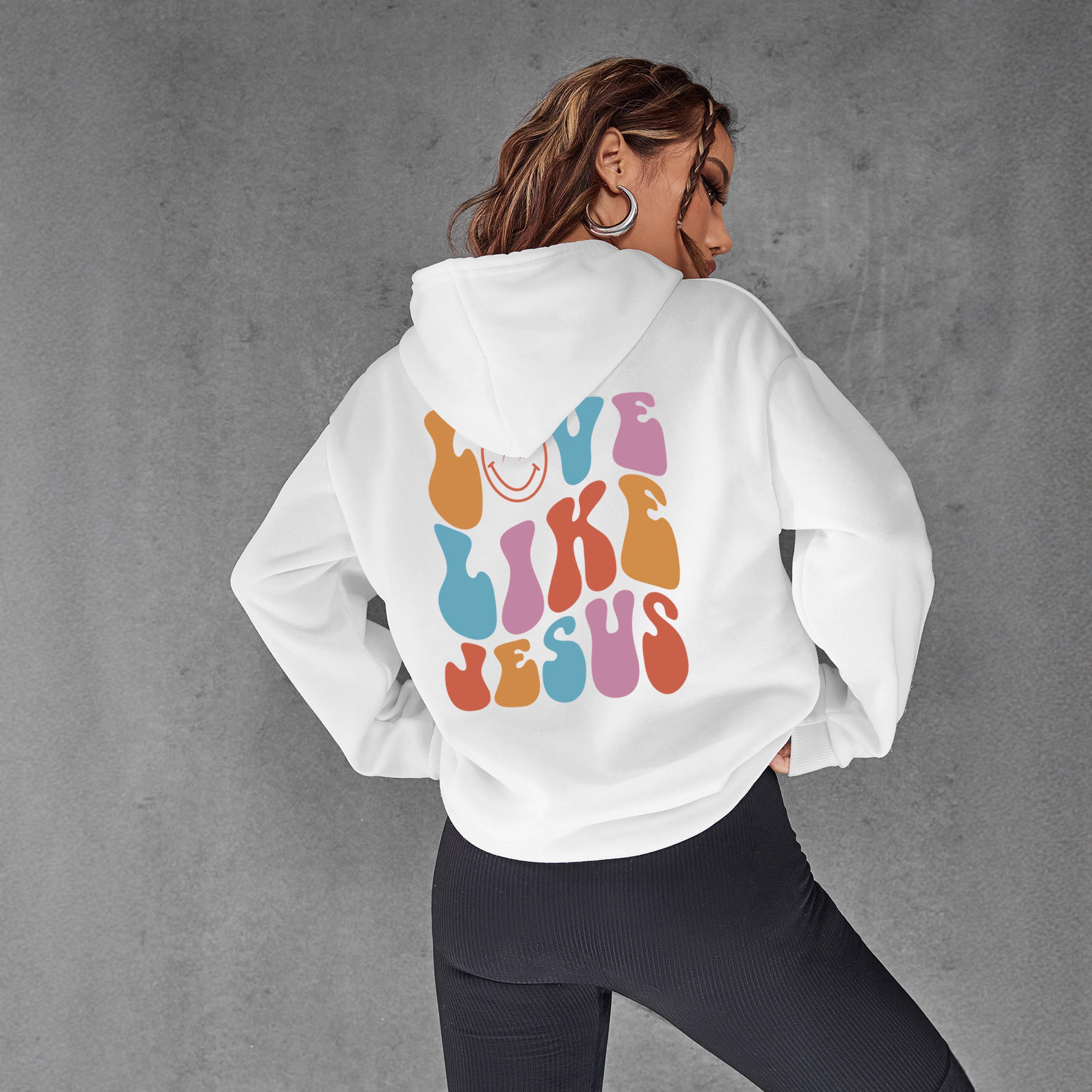 亚马逊 Faith Over Fear 女式连帽衫印花图案落肩袖运动休闲上衣