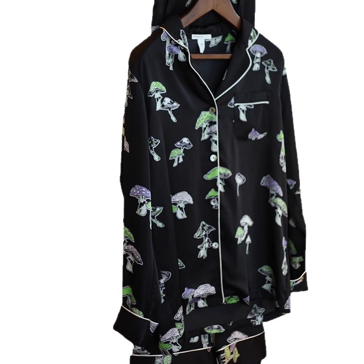 2025黑色显瘦VH睡衣女套装大气轻奢睡衣家居服女夏透气3D数码印花