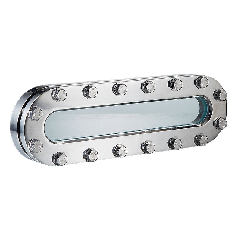 304不锈钢条形视镜高硼硅玻璃观察长四氟垫片椭圆型螺纹
