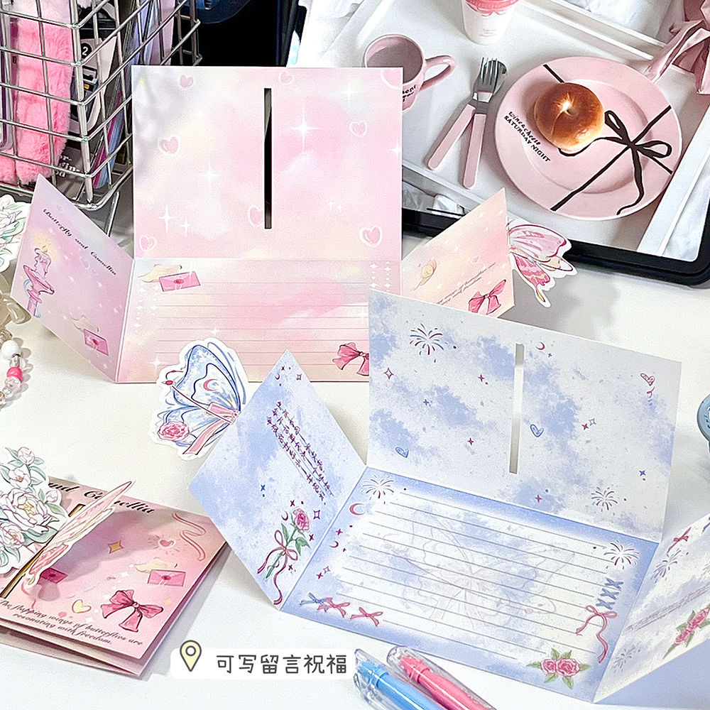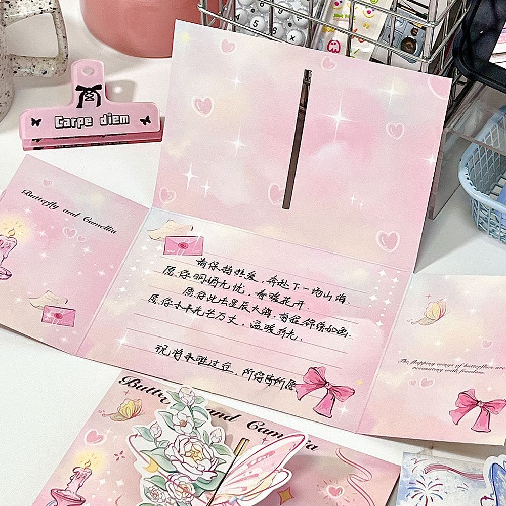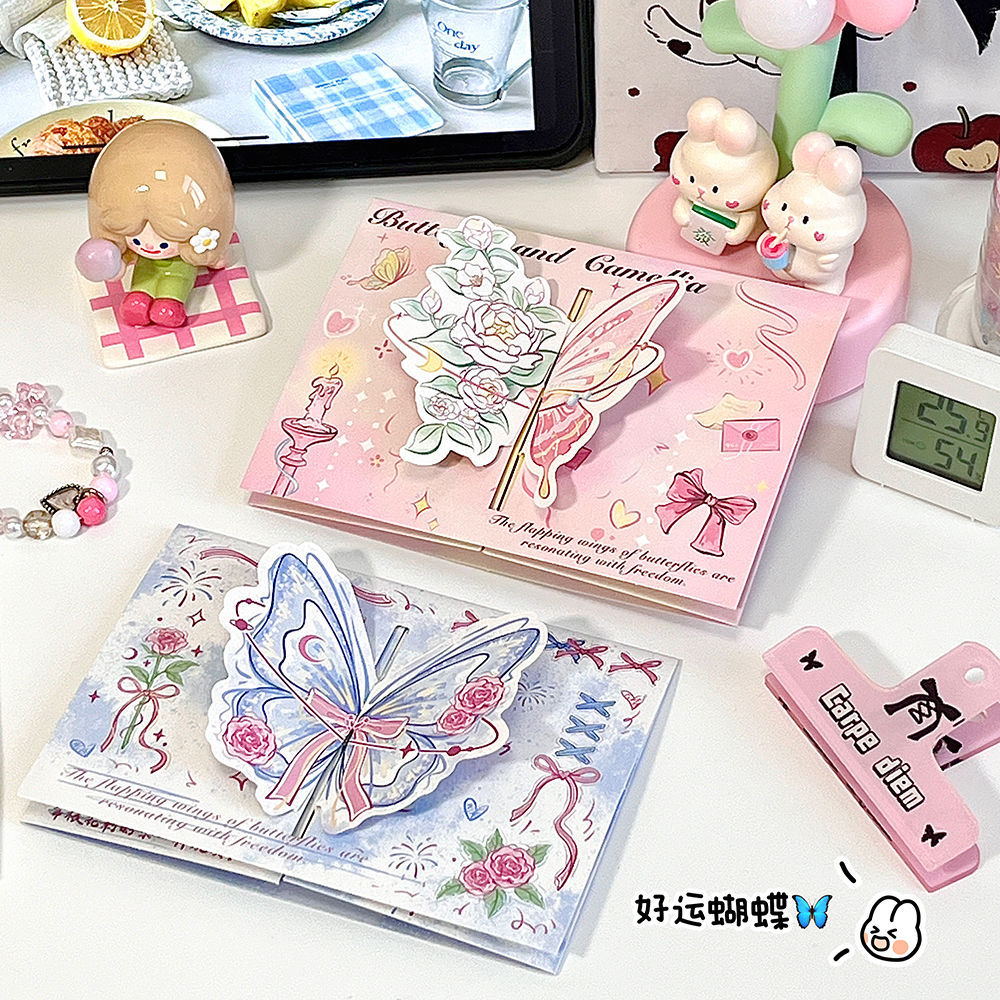 ins山茶花蝴蝶立体贺卡3d可折叠祝福留言贺卡生日礼物卡片送闺蜜