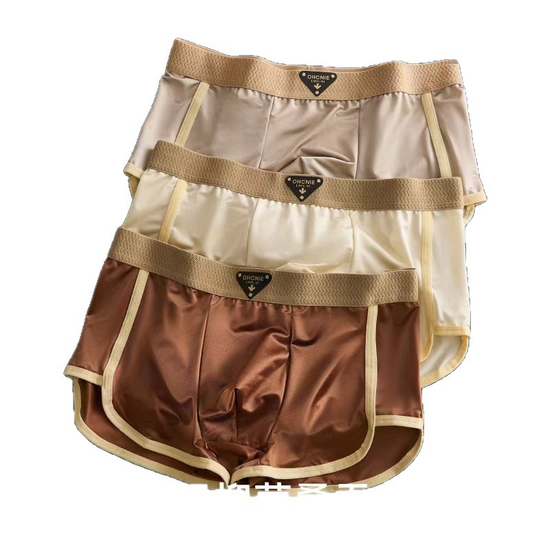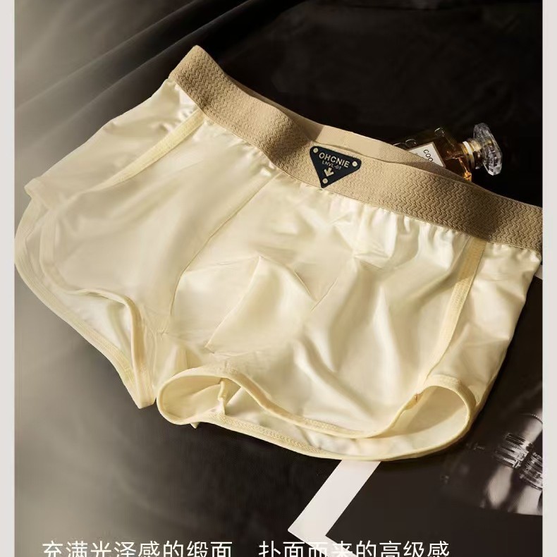 针镒高级感轻奢缎面冰丝男士薄款无痕透气舒适夏季青年潮流中腰