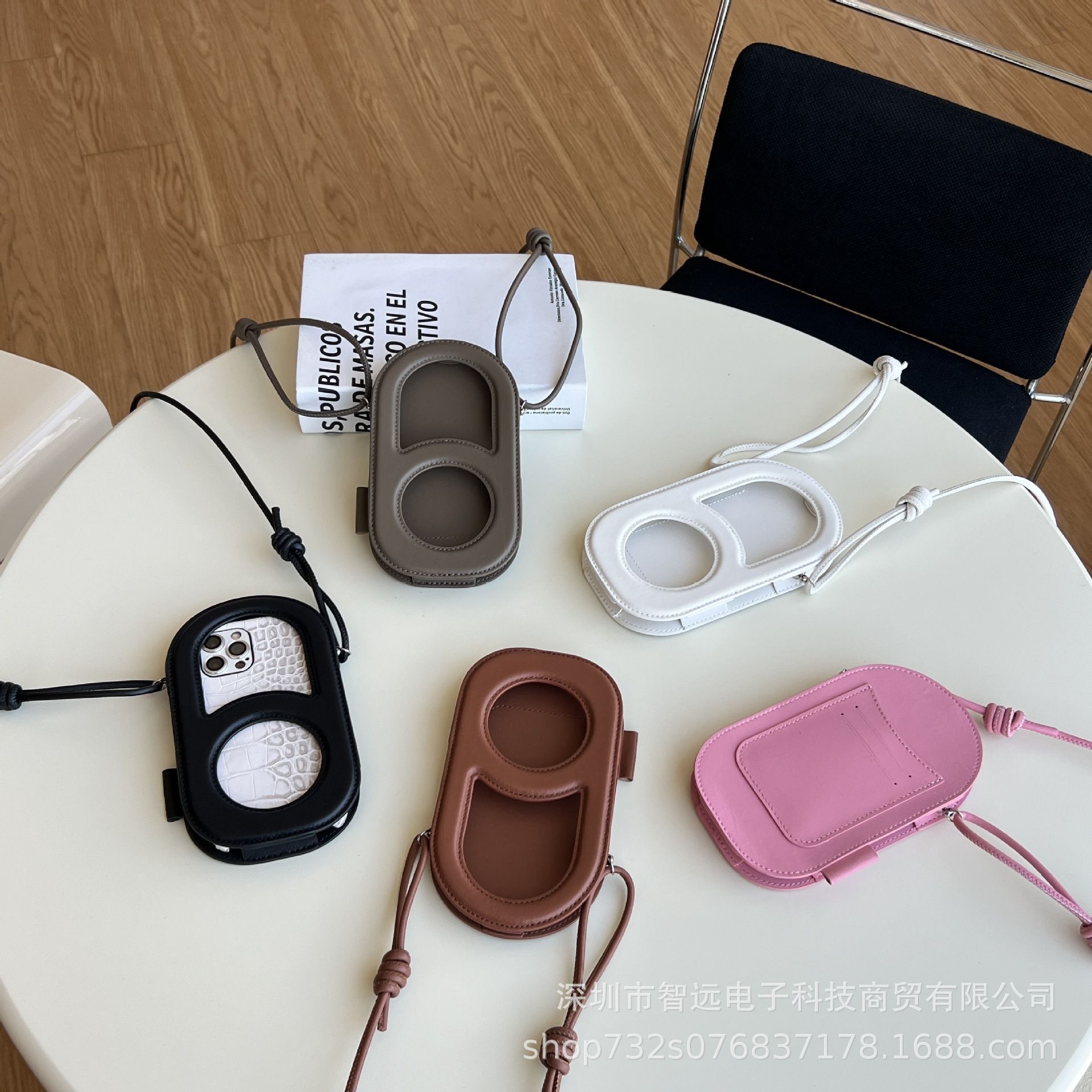 真皮可爱少女ins手机包包女2025新款斜跨单肩镂空防摔挂脖手机包