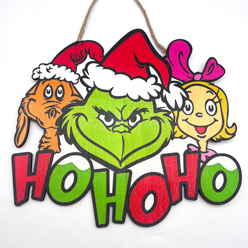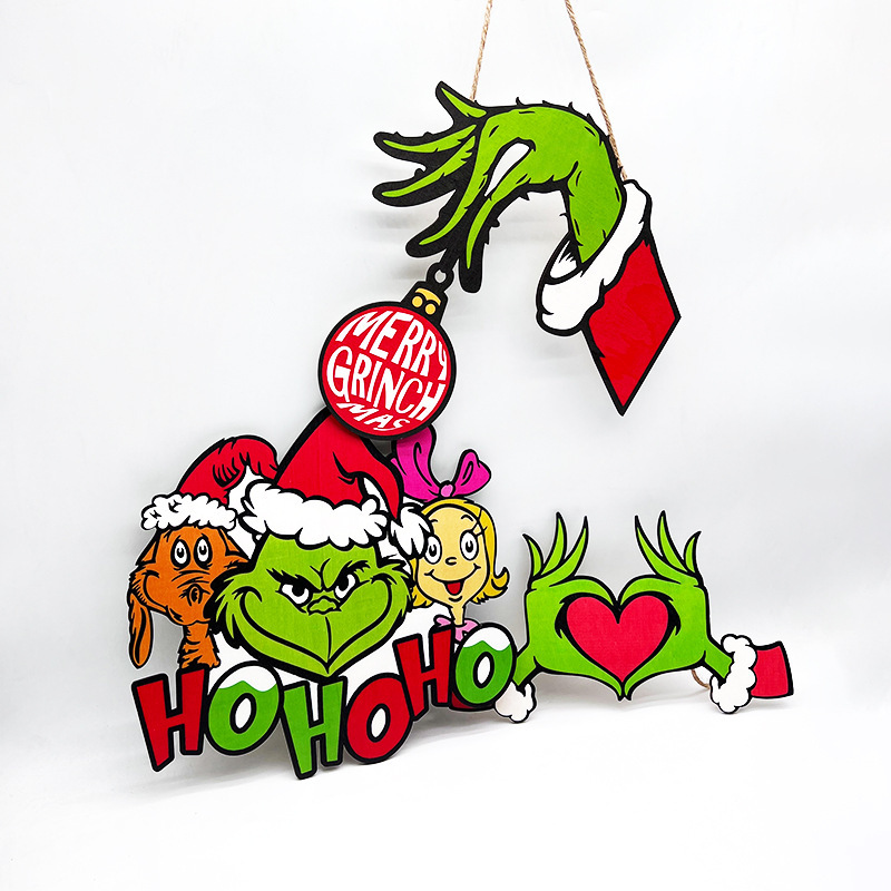 跨境热销圣诞节挂牌创意挂件圣诞装饰字母挂件格林奇派对木质挂饰