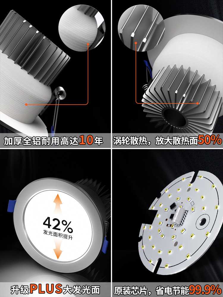 灯光颜色 | 【柔光防眩】5W中性光 开孔7.5-8cm | | 灯光颜色 | 【买4送1】旗舰全铝 5W暖光 7-9cm |