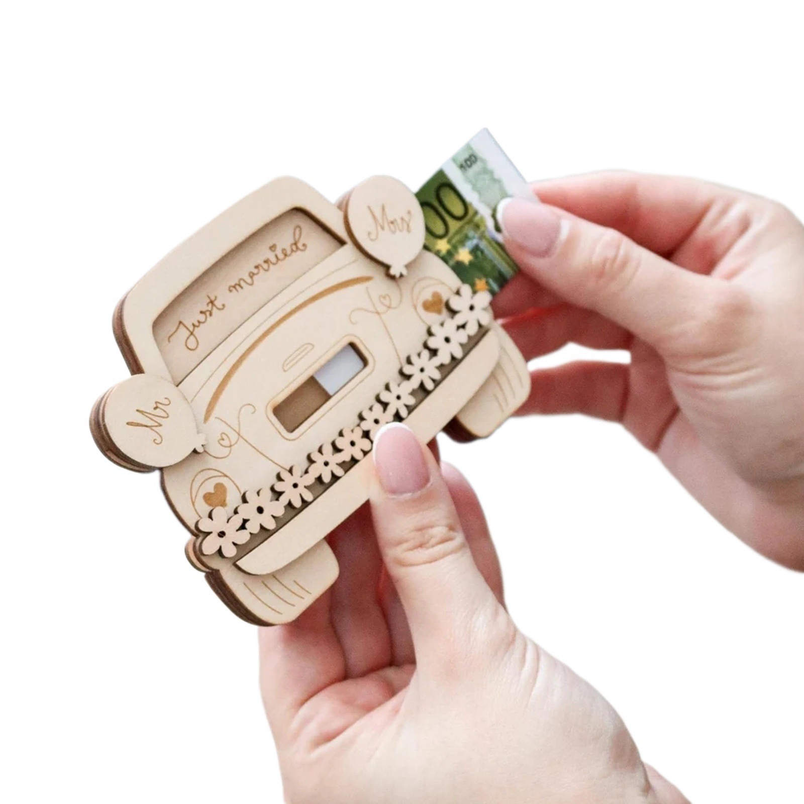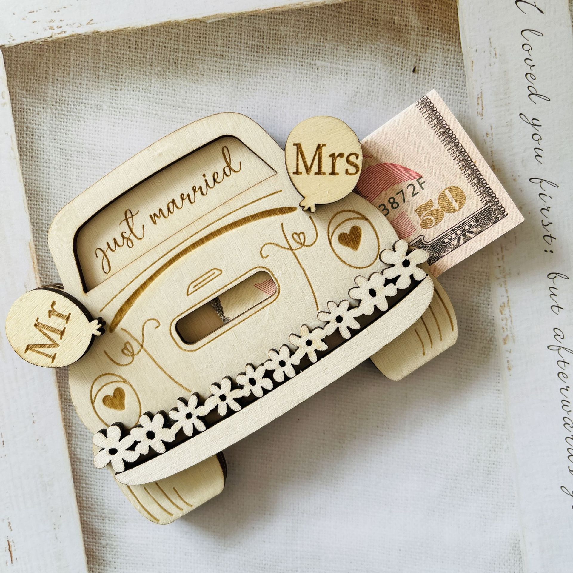婚礼礼金礼品与信封卡金钱礼儿童品新娘和新郎的礼物木制收纳摆件