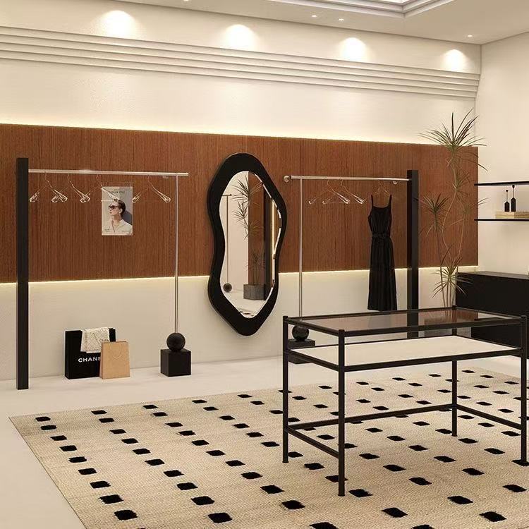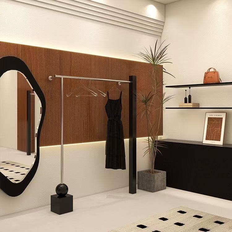 服装店专用展示架不锈钢搭配黑色上墙陈列架女装店衣服挂衣架货架