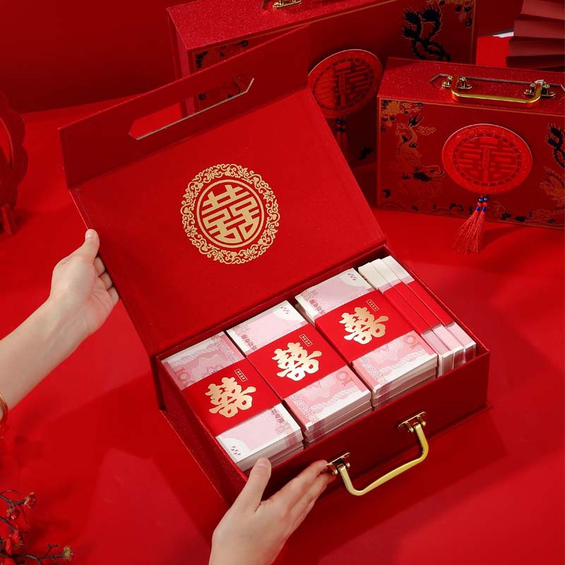 现金彩礼礼盒喜糖盒子提亲彩礼箱结婚10--20万聘金金钱喜蛋