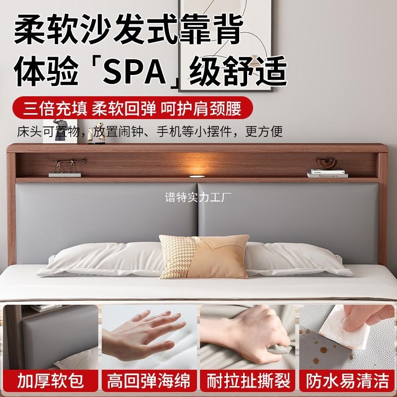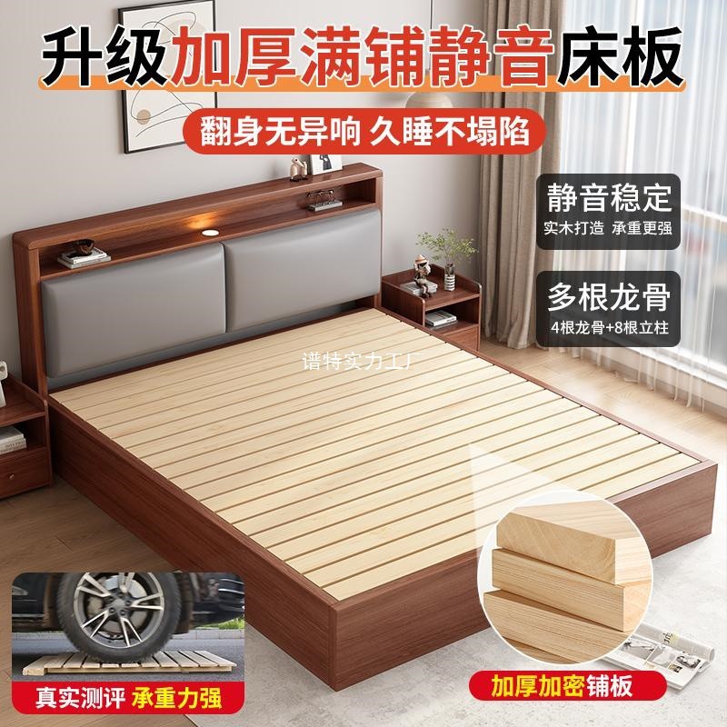 实木床1米8双人床家用主卧软包1.5米新款出租房储物单人床排骨架