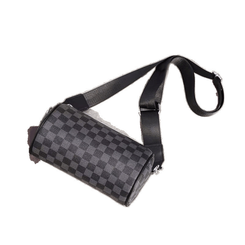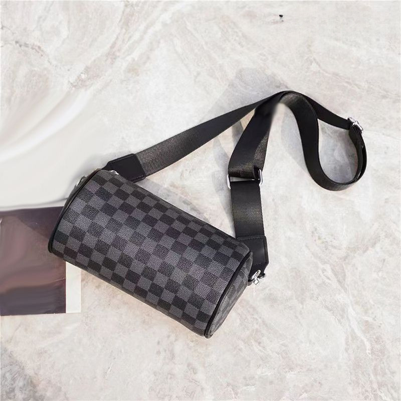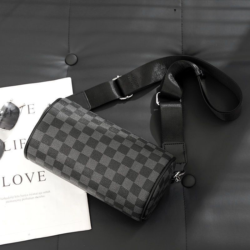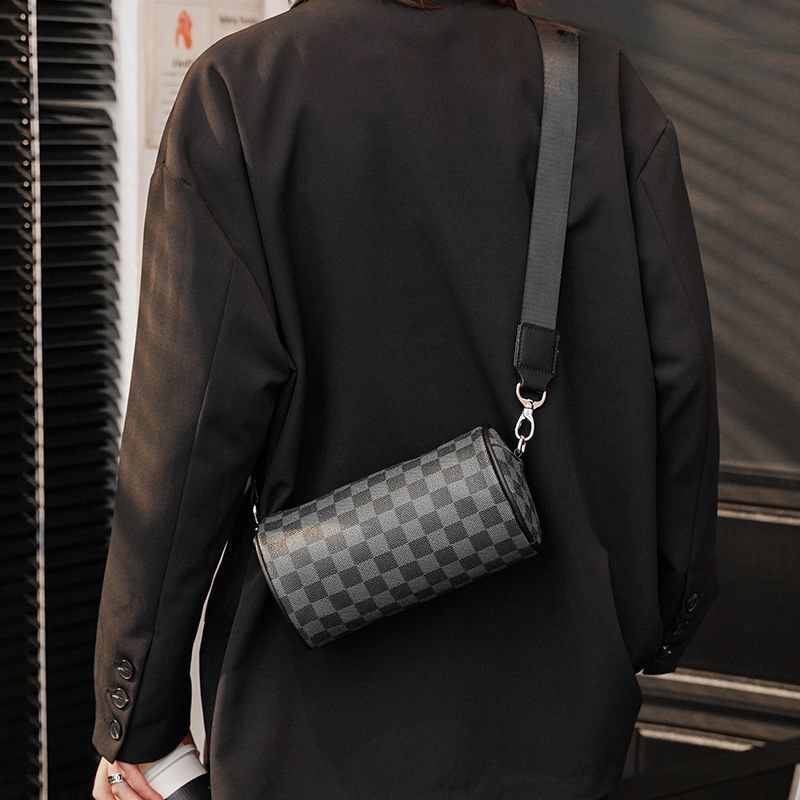 斜挎包男欧美时尚老花单肩包女新款潮情侣格子休闲中性圆筒包