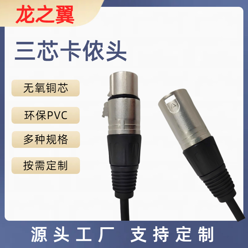 龙之翼3芯卡侬头音视频转换线麦克风话筒音频信号带线插头延长线