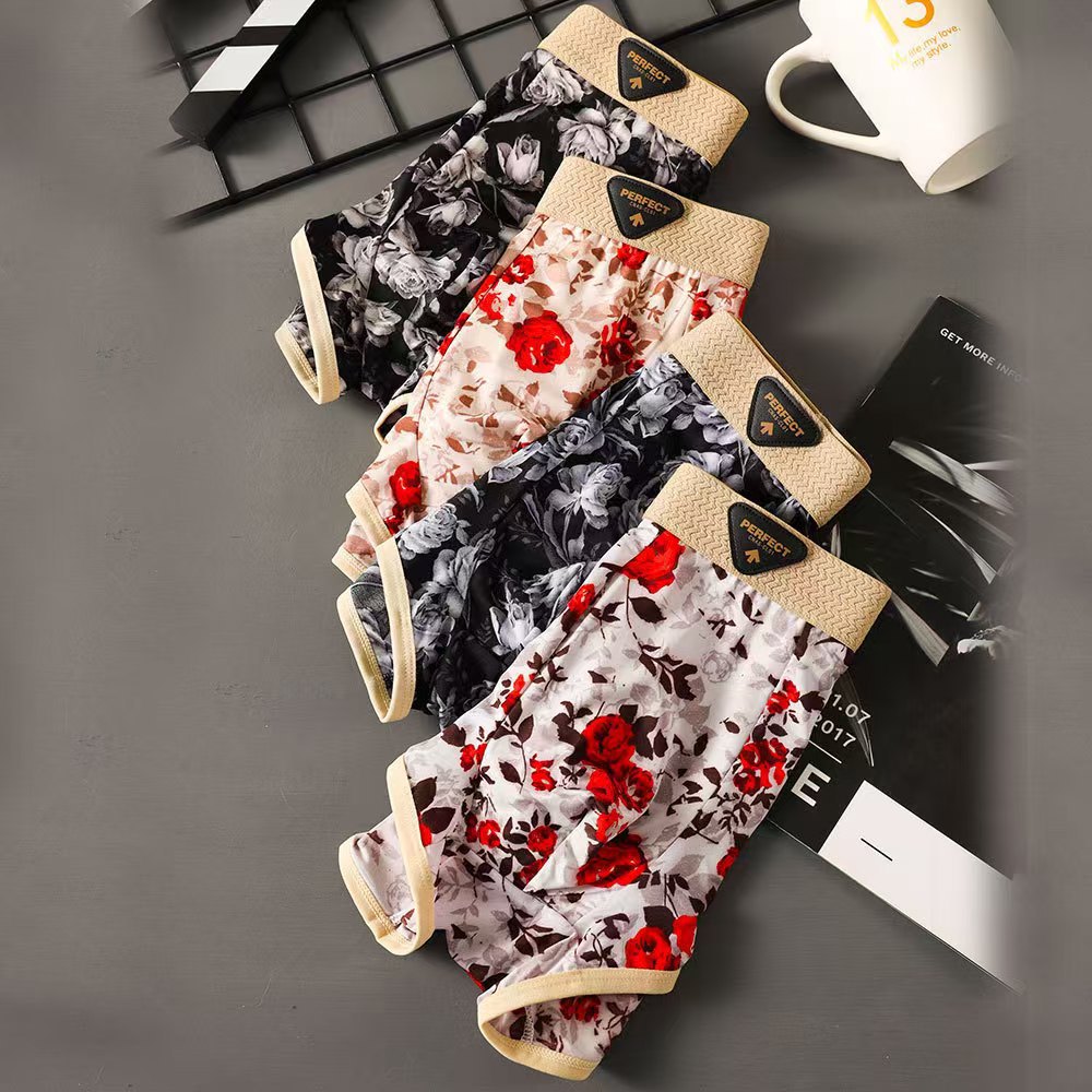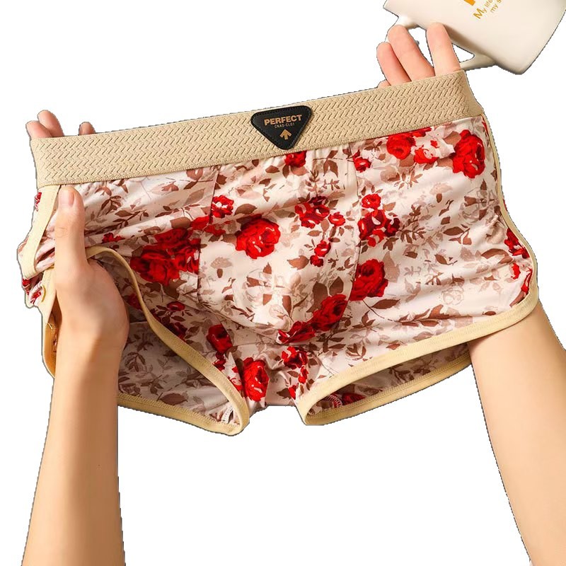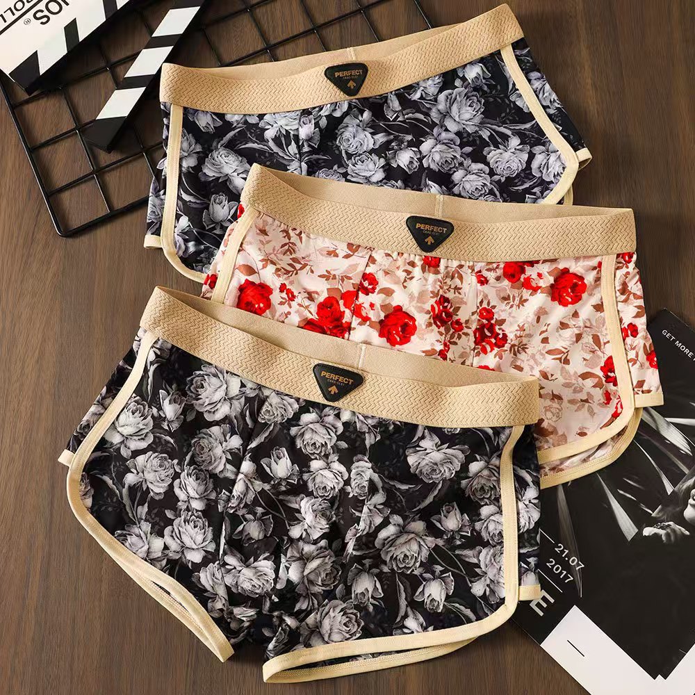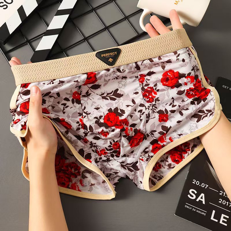 慕朗森浪漫玫瑰~夏季冰丝男士内裤潮流舒适平角裤性感薄款印花裤