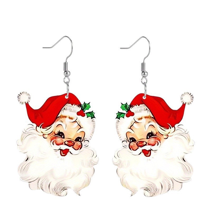 跨境欧美可爱圣诞老人亚克力吊坠耳环 - 圣诞节创意礼物耳饰