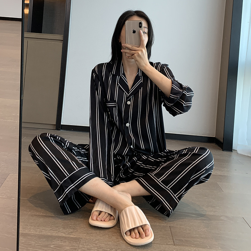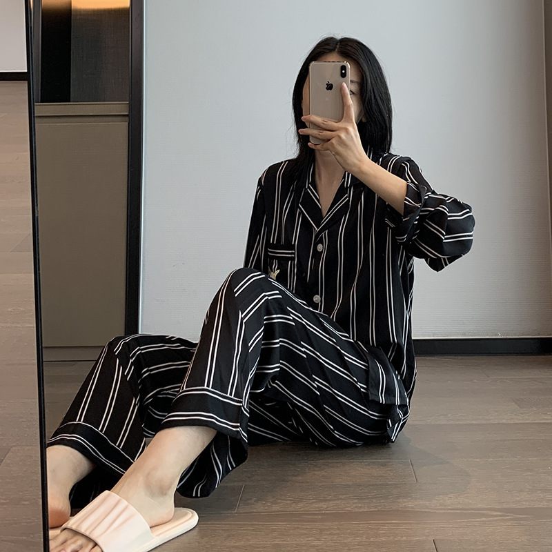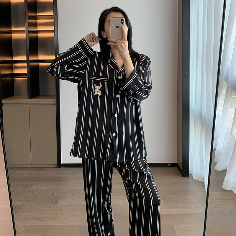 2025野兽派睡衣女春秋新品女款长袖条纹家居服可外穿3D数码印花.