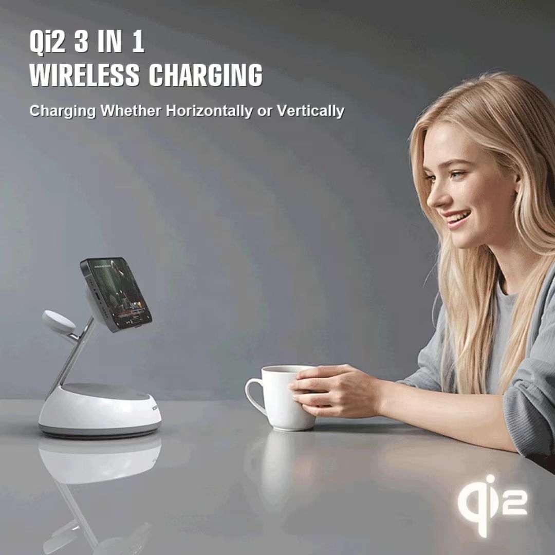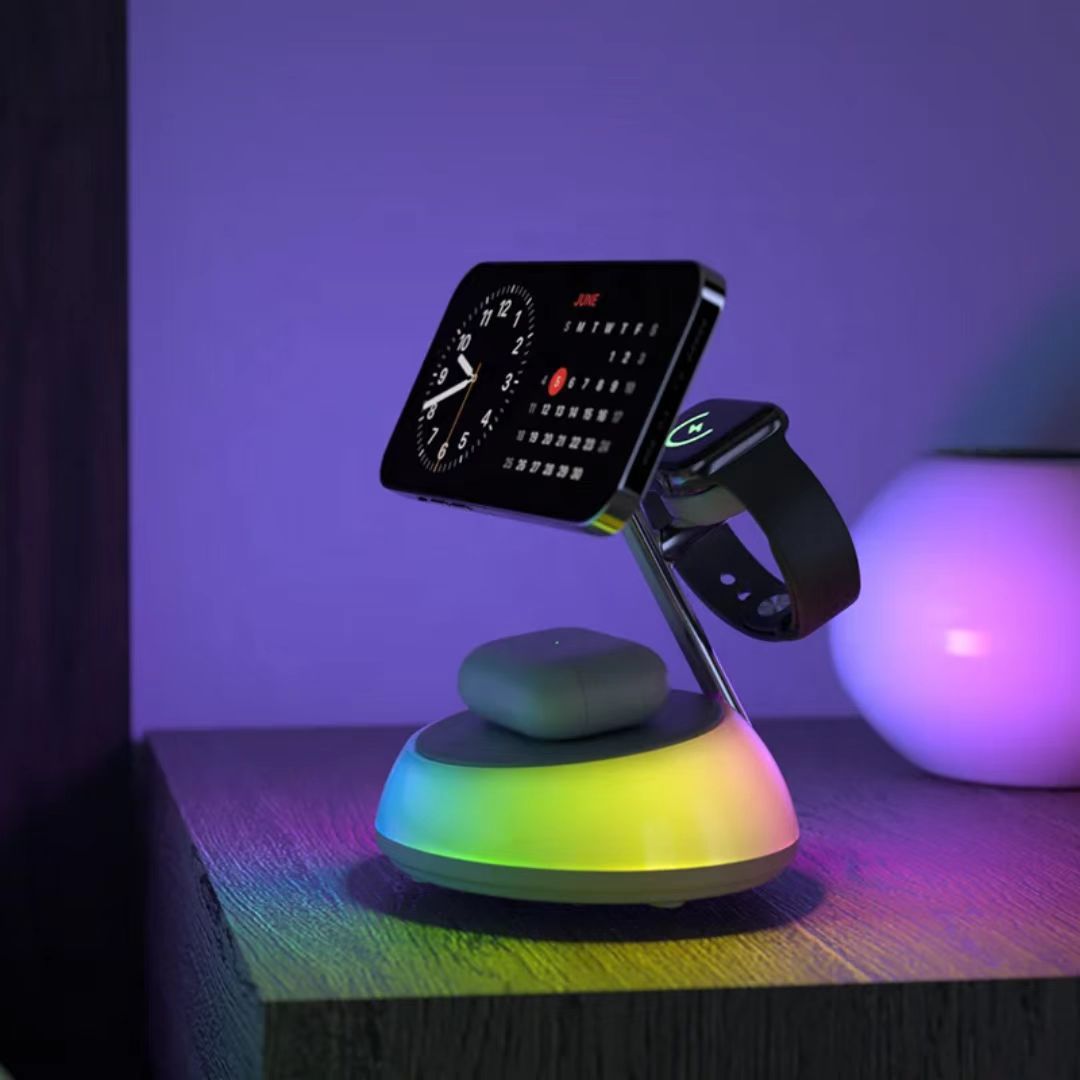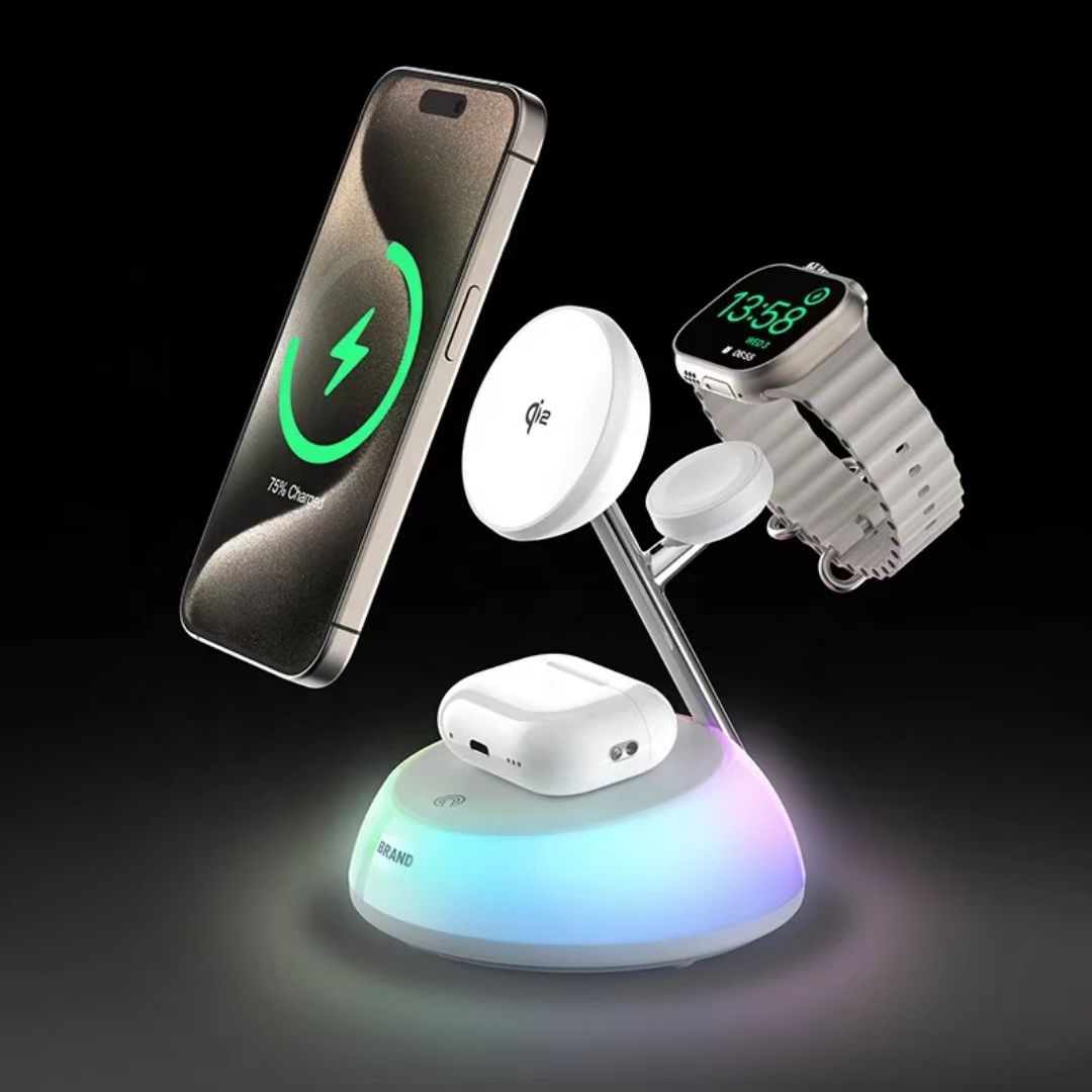 KC QI2四合一车载无线充电器可折叠小夜灯LED床头灯手机支架跨境