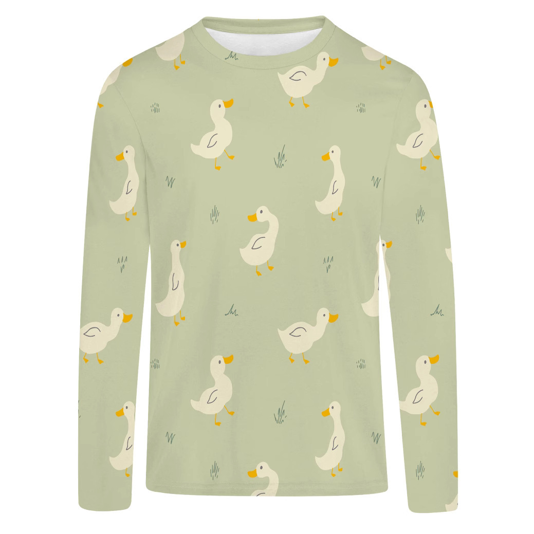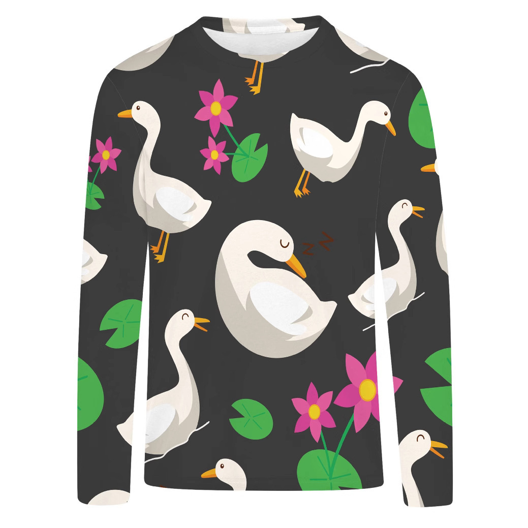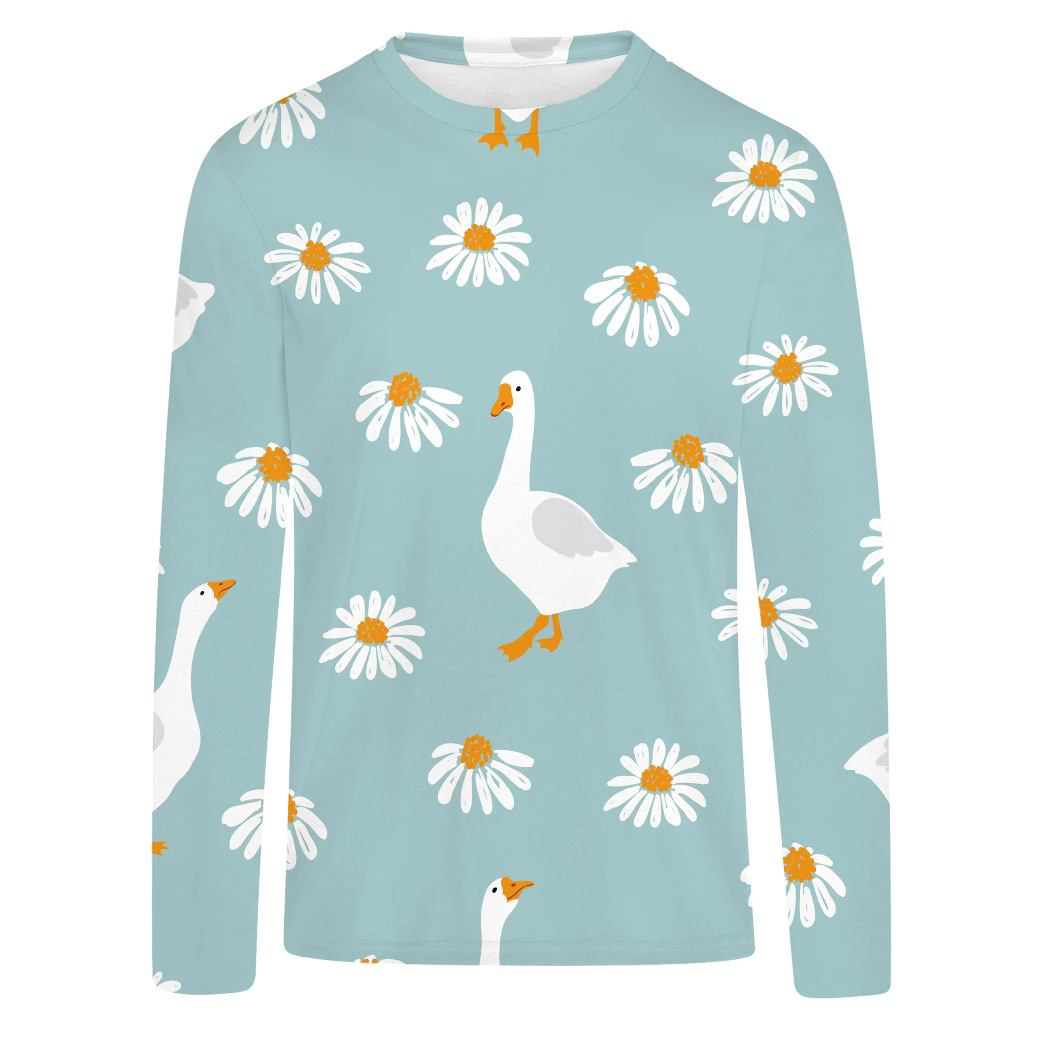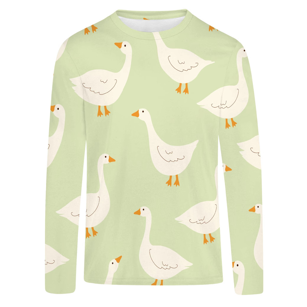 欧美跨境春秋季 文艺卡通小白鹅3D数码印花女式圆领休闲长袖T恤衫