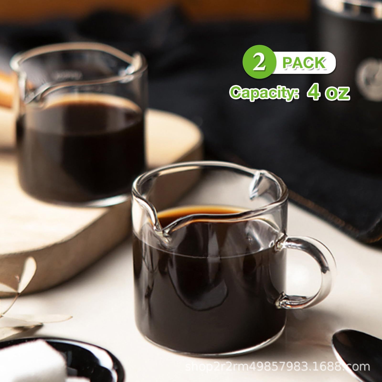 亚马逊跨境高硼硅玻璃双嘴咖啡杯小奶盅4盎司家用透明玻璃咖啡杯
