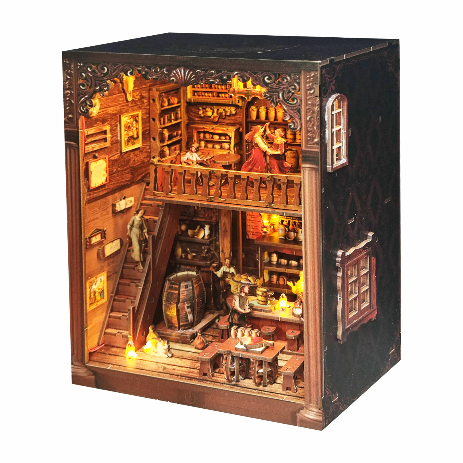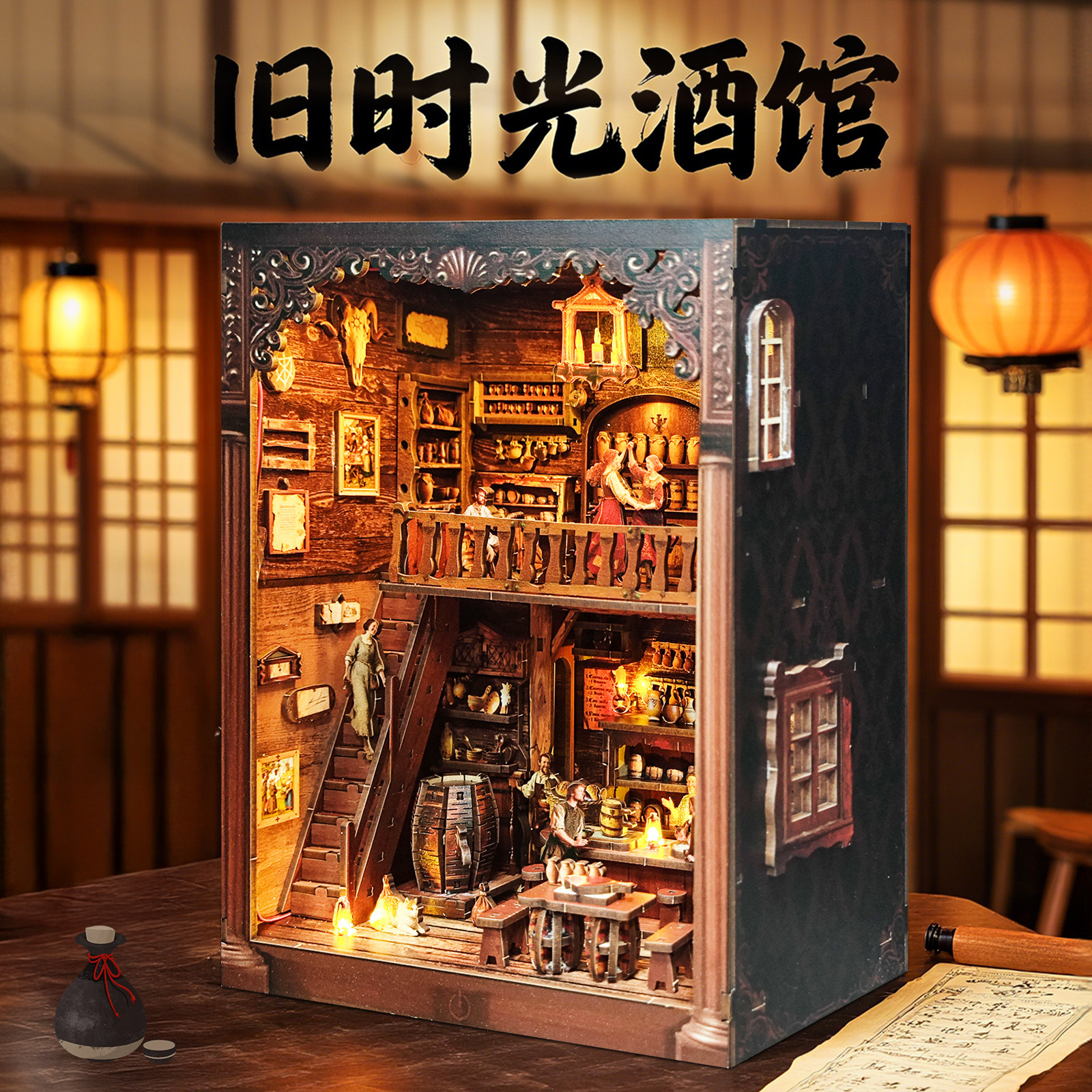旧时光酒馆木质书立创意diy拼装小屋手工3D建筑模型礼物跨境爆款