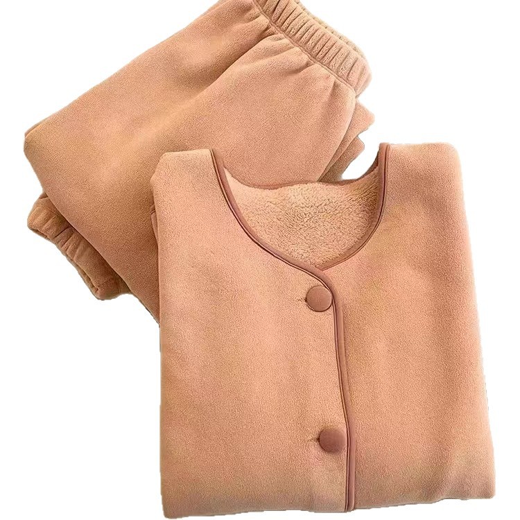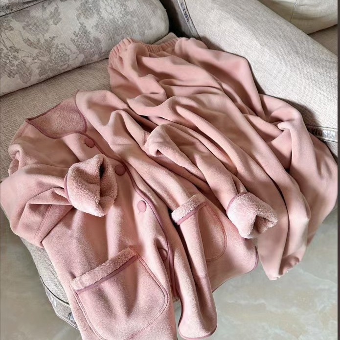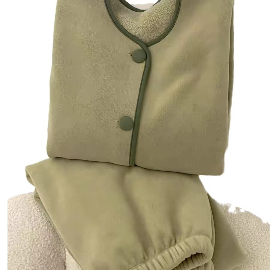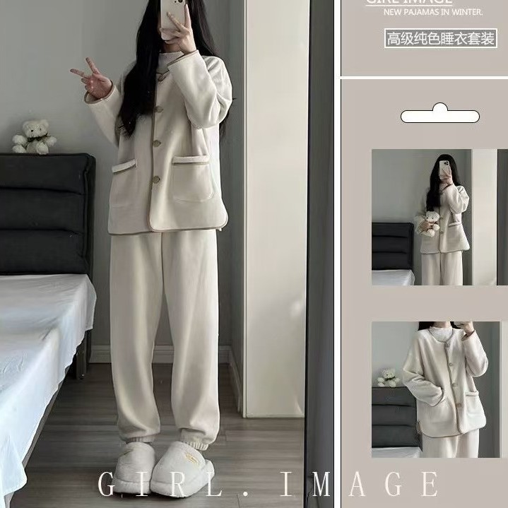 睡衣库【抹茶绿小香风】可外穿珊瑚绒长袖睡衣女套装秋冬季加厚毛