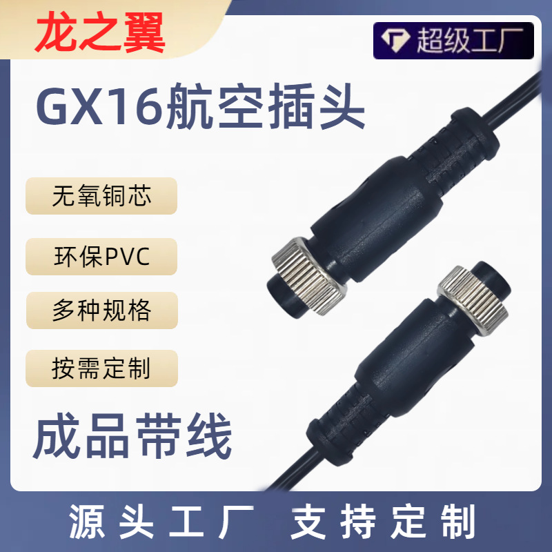 GX16航空插头4芯带线舞台灯光功放话筒M公母头对接M16 12连接器