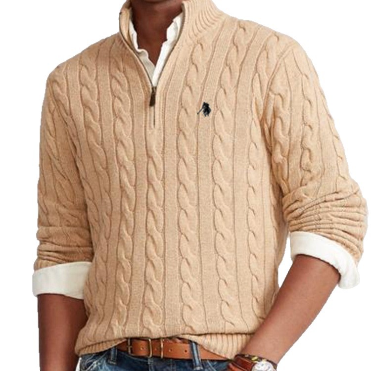 男装毛衣秋冬季立领小马麻花针织毛线衫休闲棉质加厚保暖RL套头衫