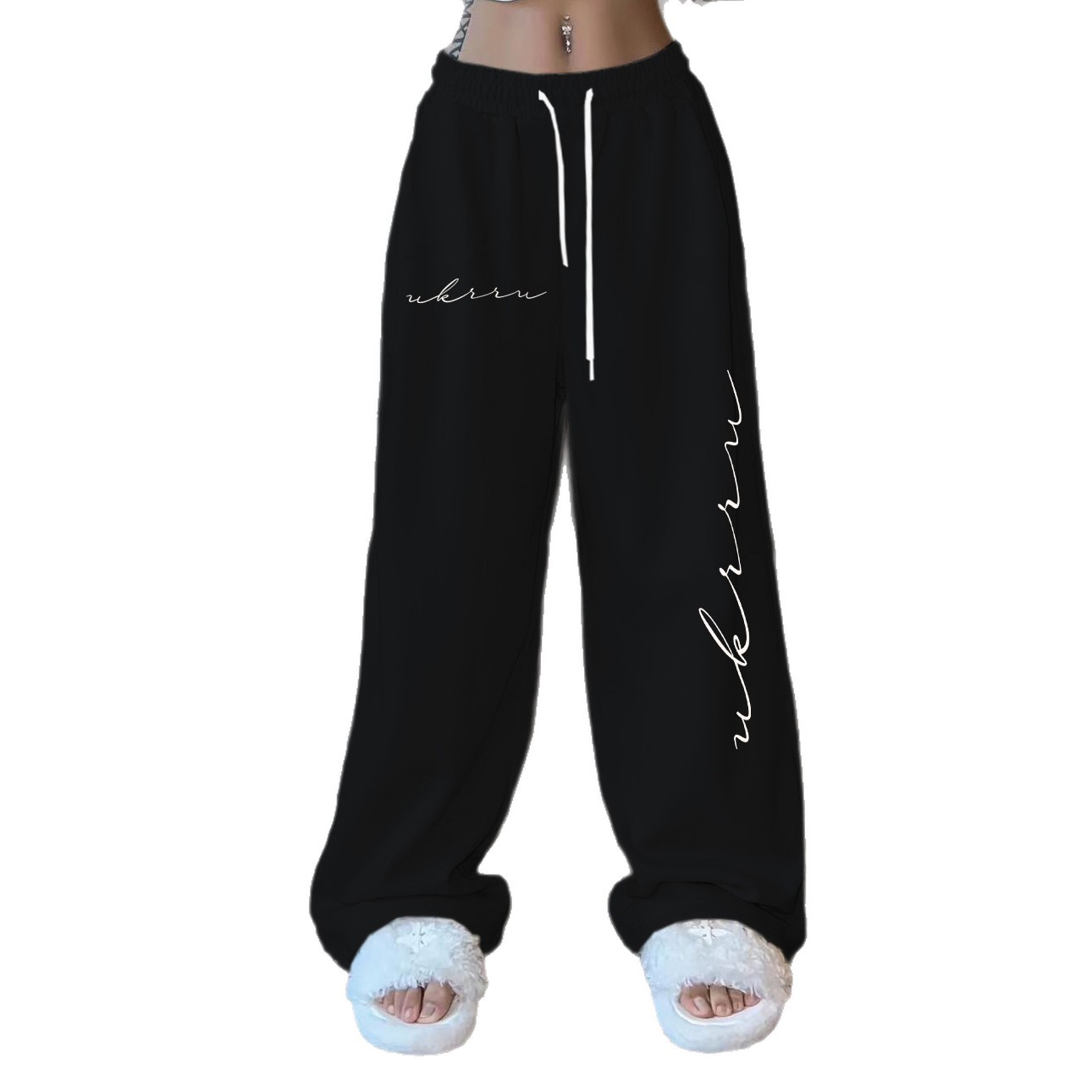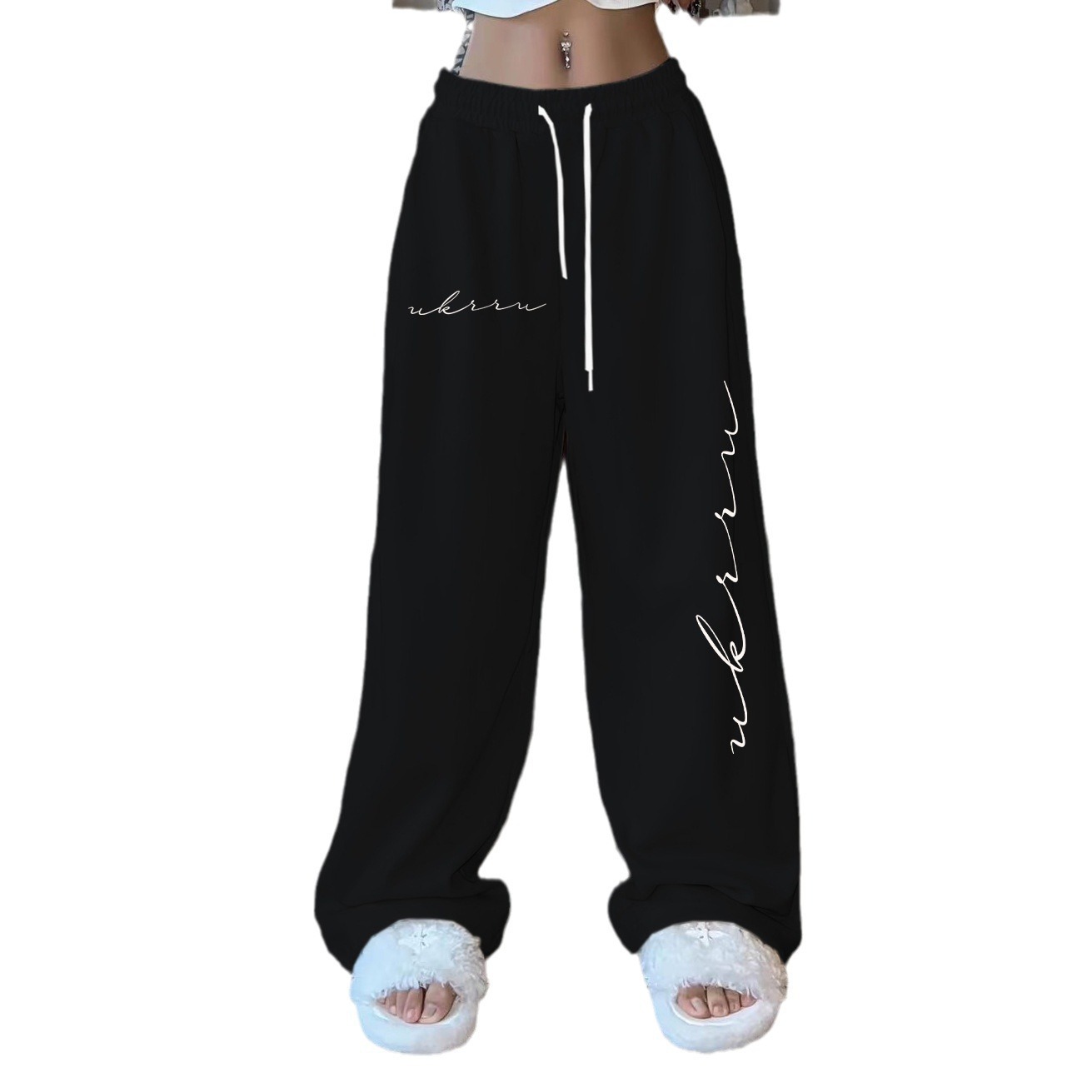 美式嘻哈简约印花hiphop街舞跳舞高腰长裤女休闲爵士宽松抽绳长裤