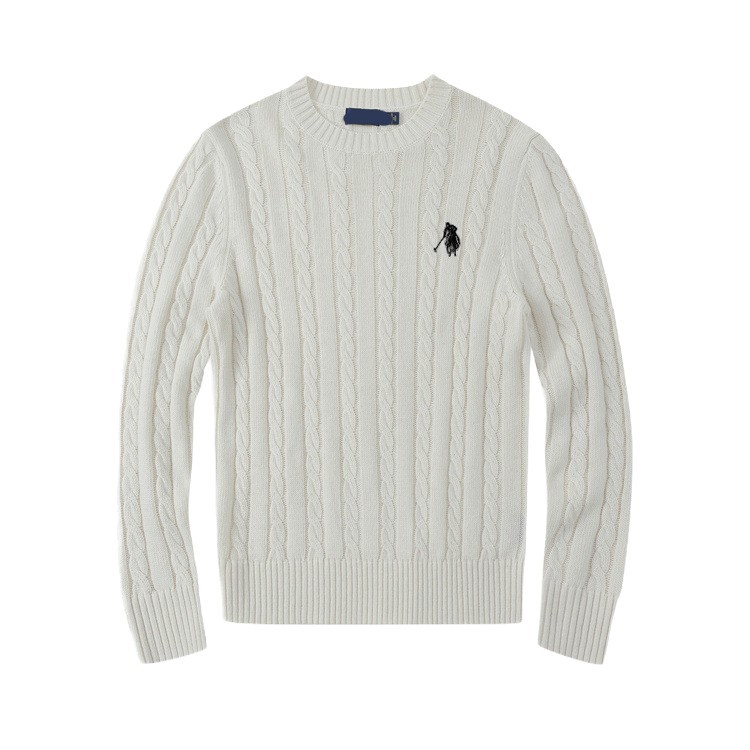 冬季圆领毛衣情侣小马麻花针织毛线衫英伦羊毛衫加厚保暖RL套头衫