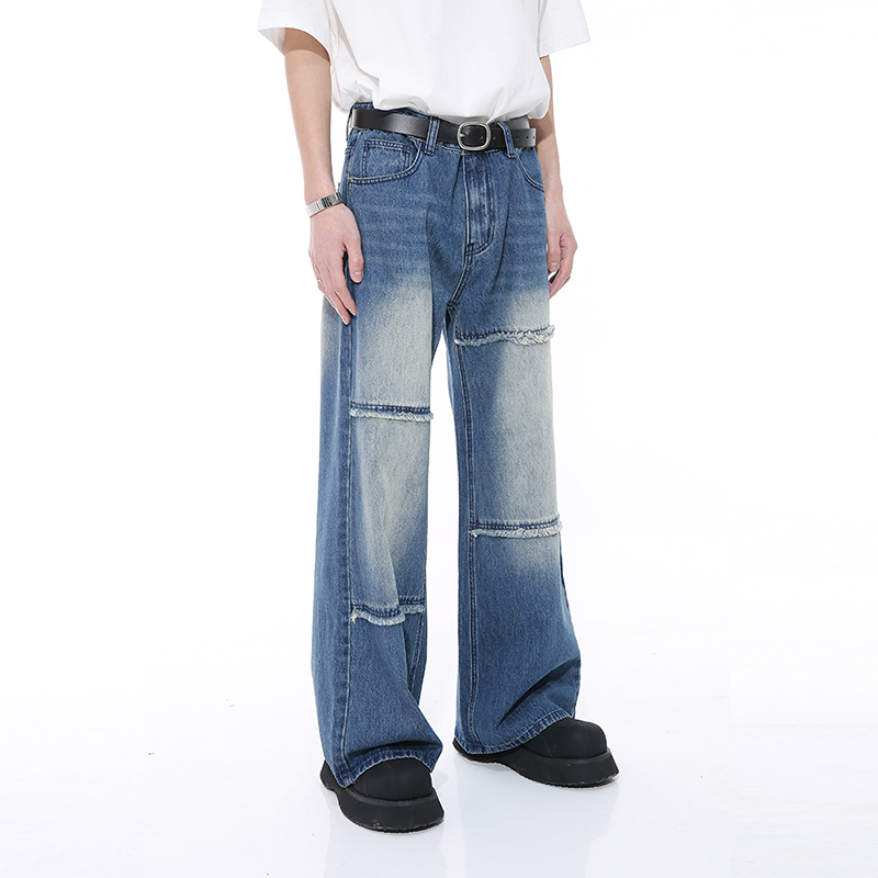 明星同VoguoRelay 毛边设计感宽松直筒中腰牛仔裤美式高街个性小