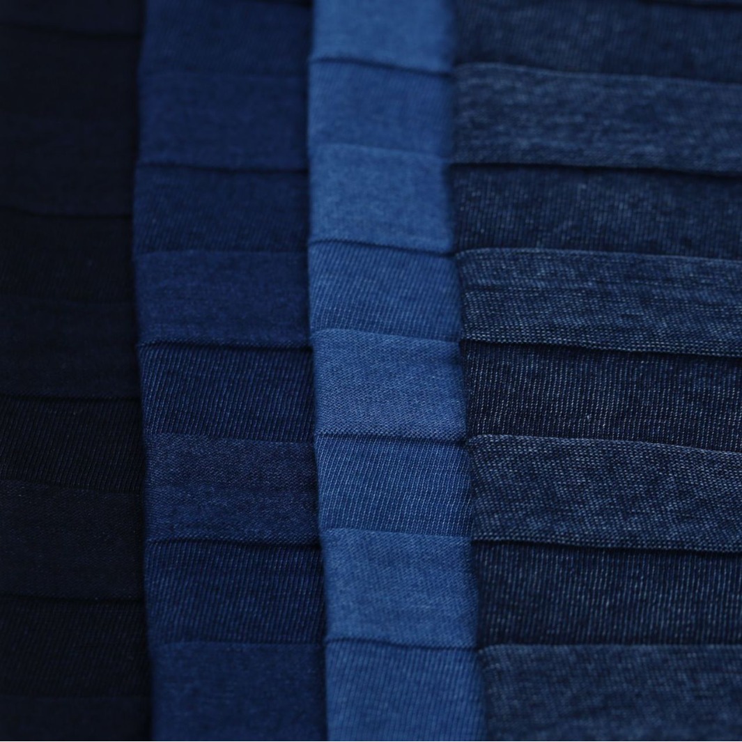 针织牛仔面料单面双面提花布靛蓝对筒大提花服装