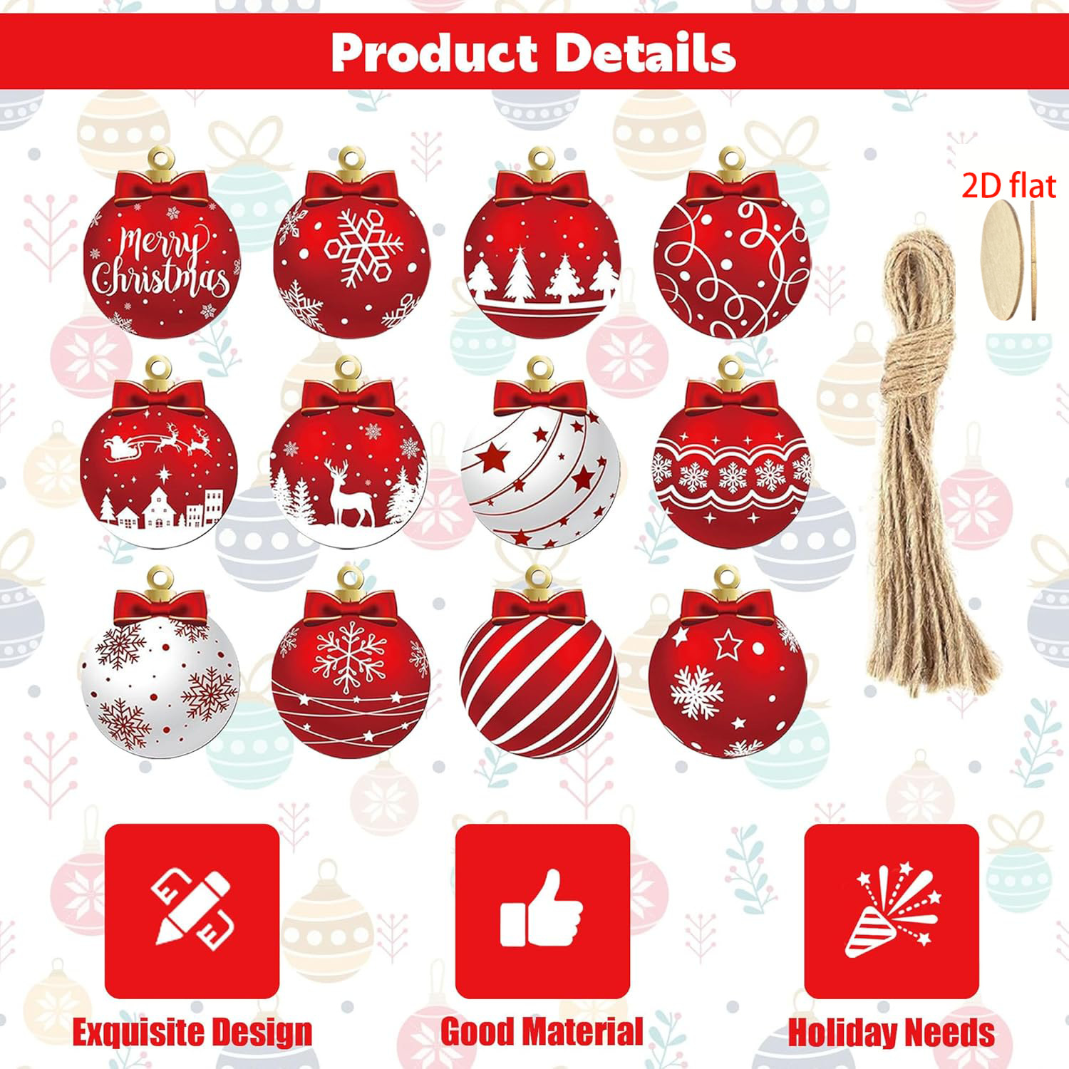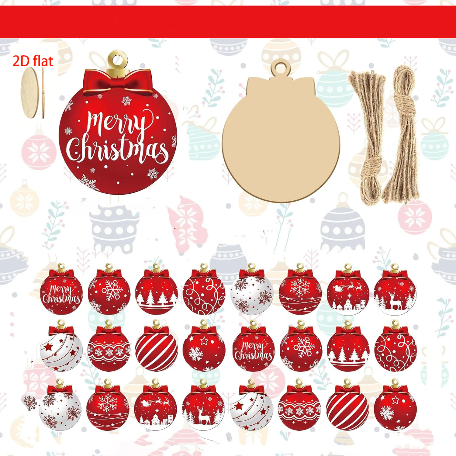 跨境创意圣诞球木质挂件套装圣诞树装饰家居派对布置用品装饰品