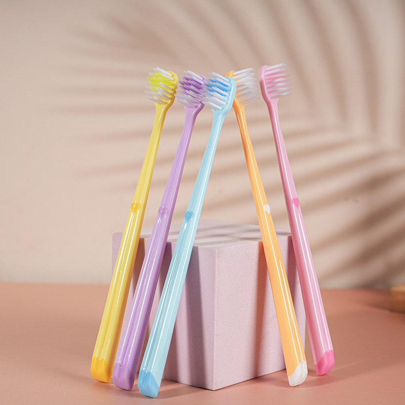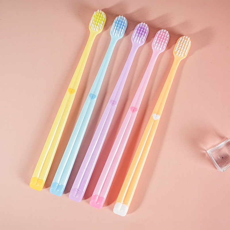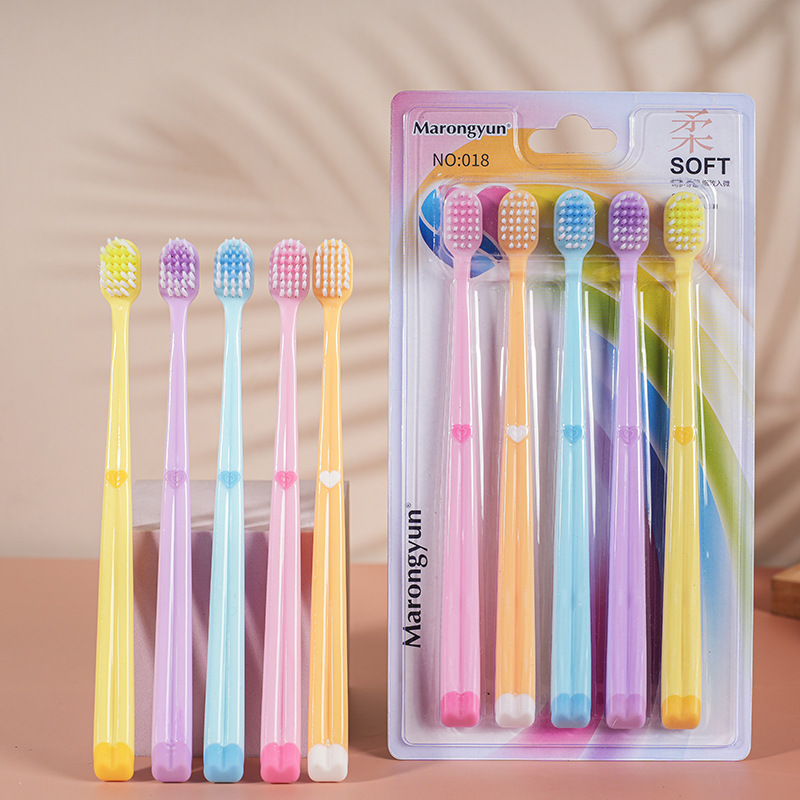 超市批发成人马卡龙色爱心款软毛刷5支装家用待客成人软毛牙刷