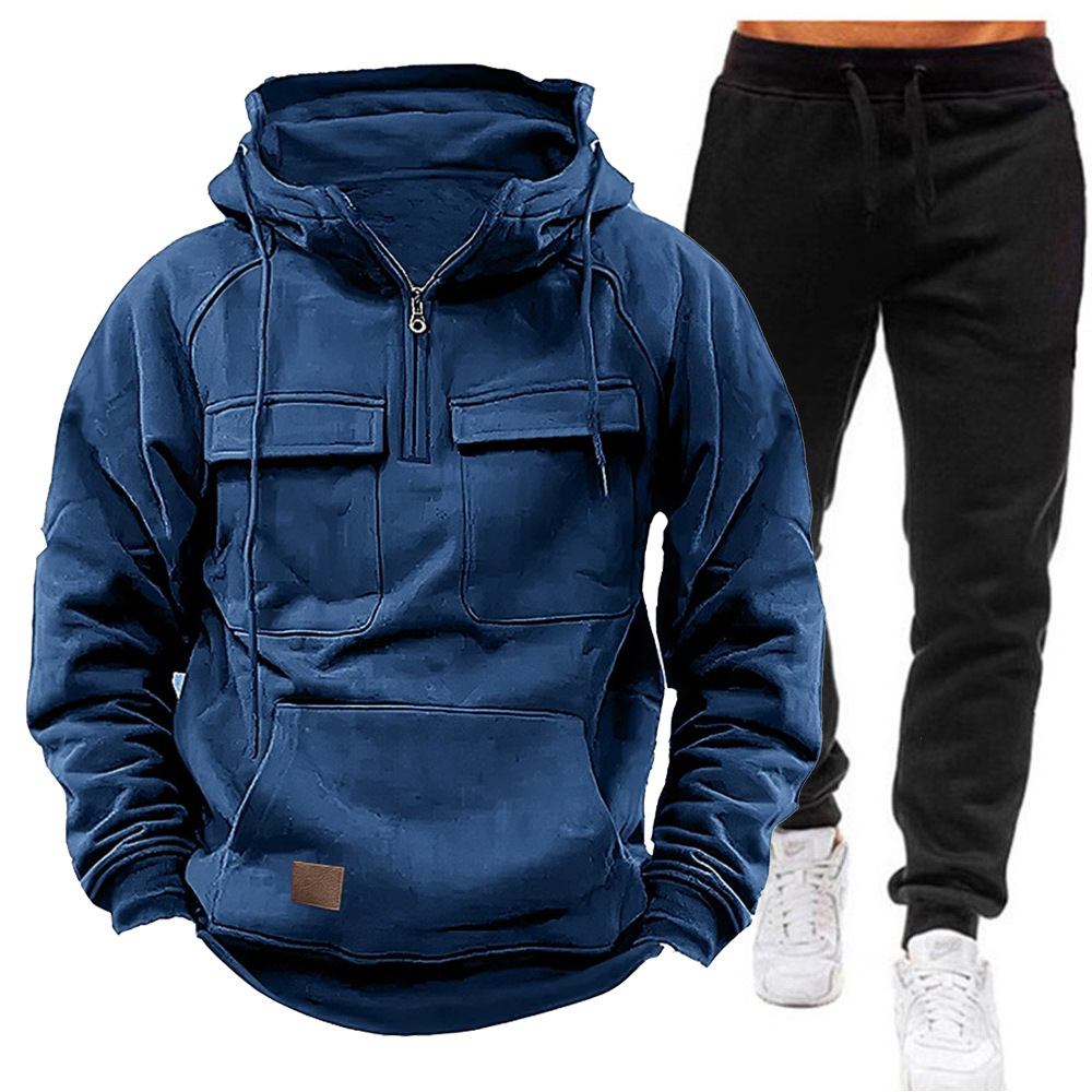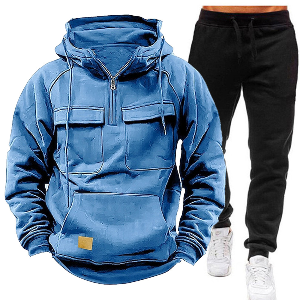 跨境亚马逊外贸拉链抽绳连帽套头卫衣春秋季新款加厚运动套装