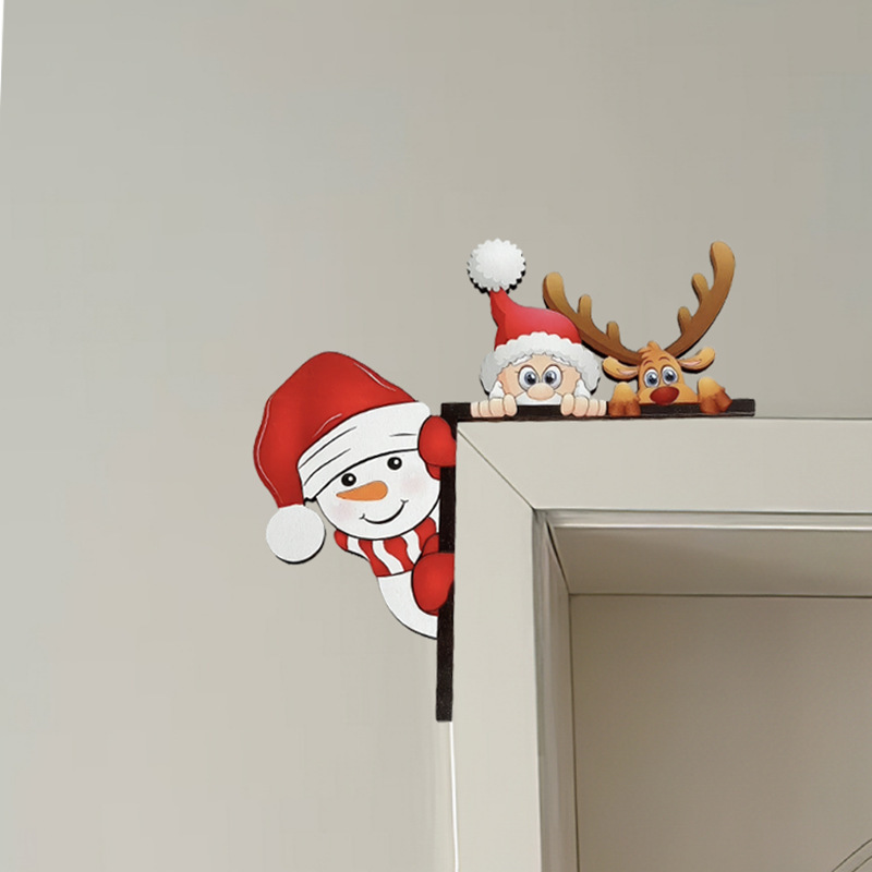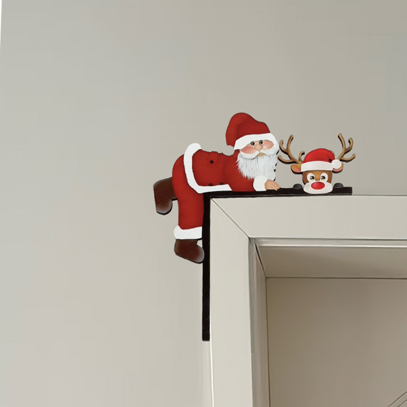跨境亚马逊圣诞节木质门框装饰转角门框装饰创意侏儒圣诞老人挂件