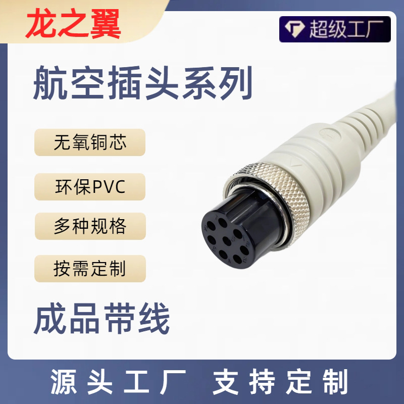 屏蔽抗干扰GX16母头带线航空插头车载倒车影像电缆插头8芯连接器