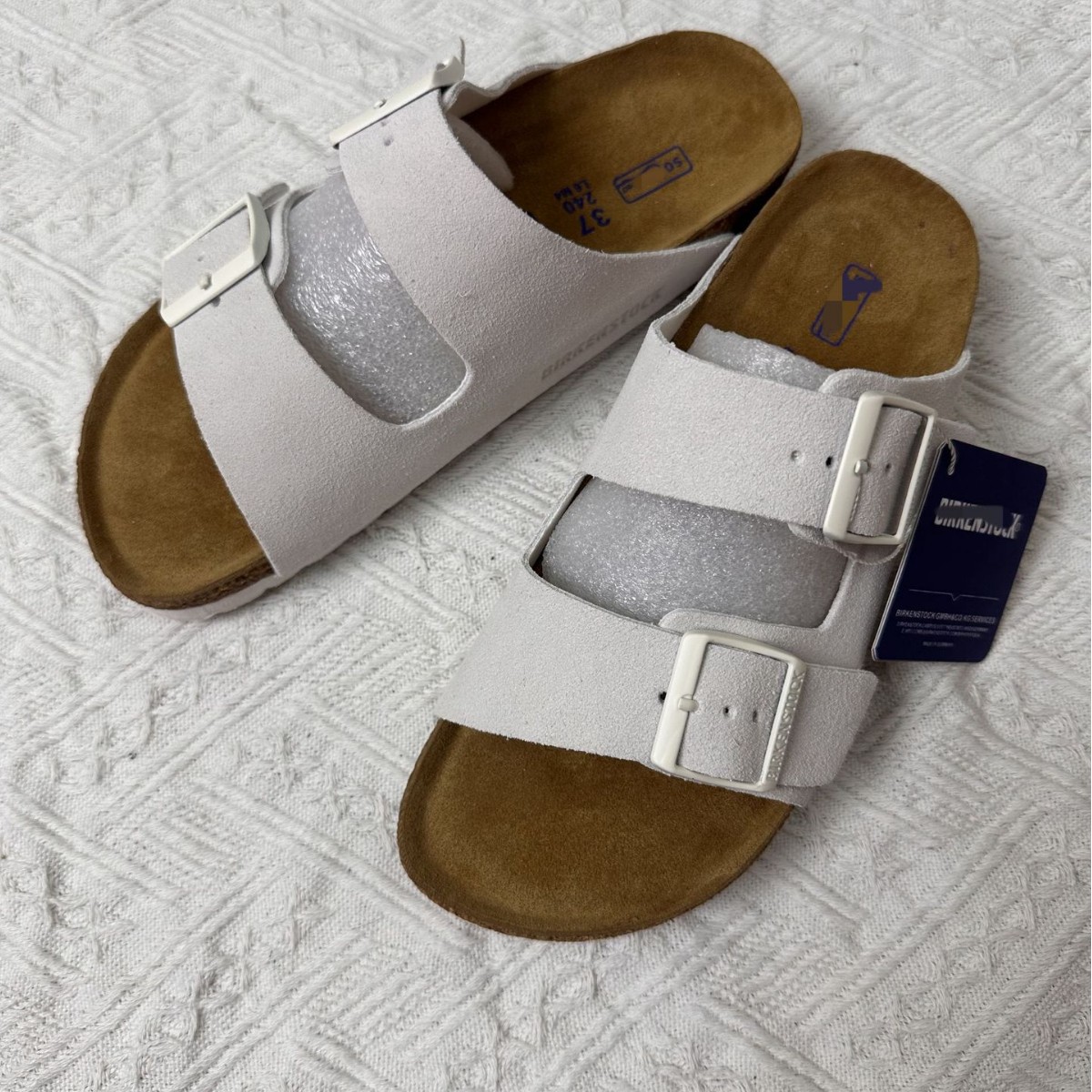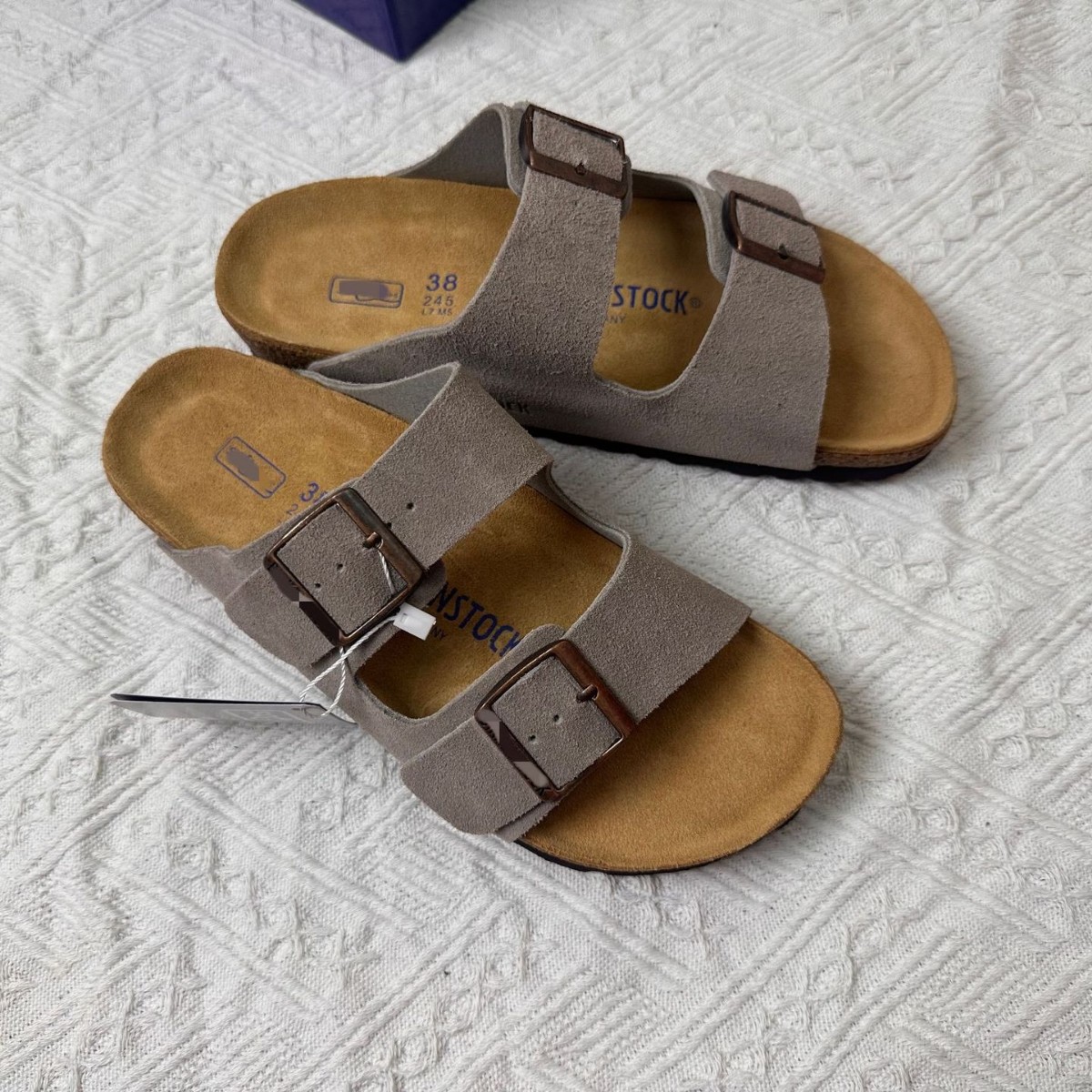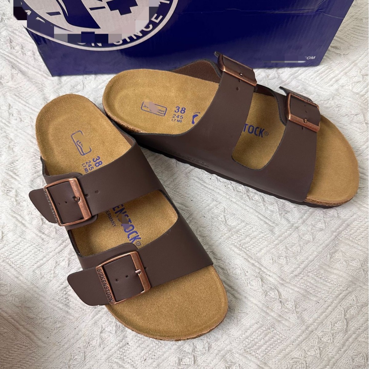 跨境二字拖全牛皮双排扣勃肯软木底2025新款懒人复古鞋