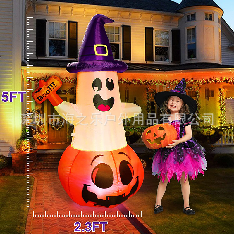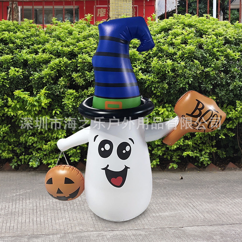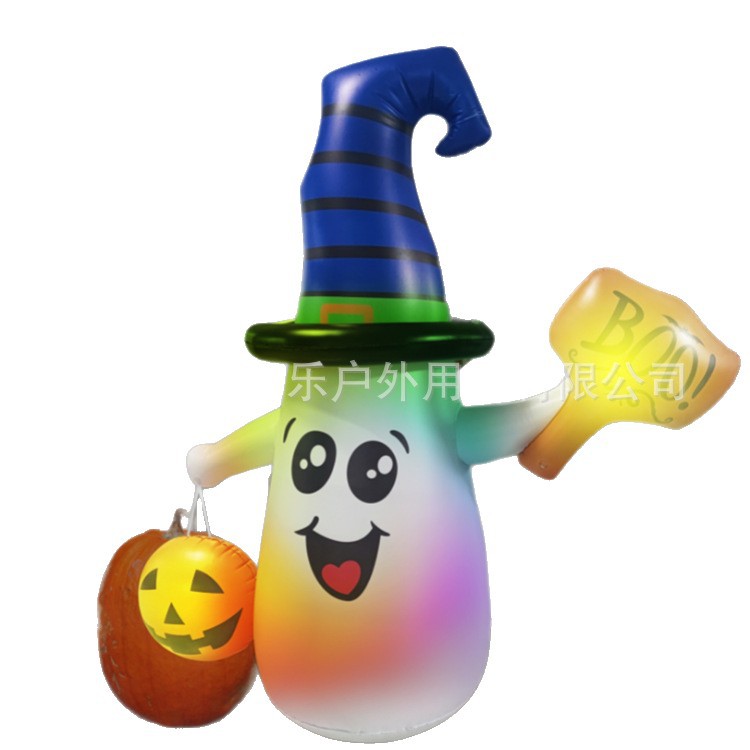 跨境新款PVC充气雪人南瓜白鬼便携式充气雪人装饰LED灯发光雪人