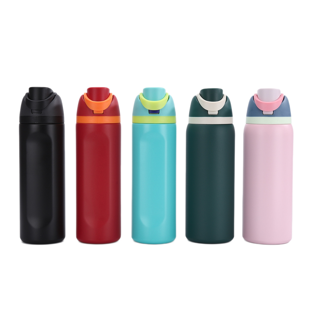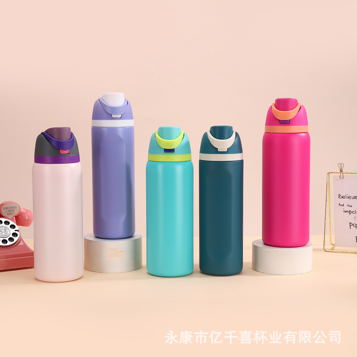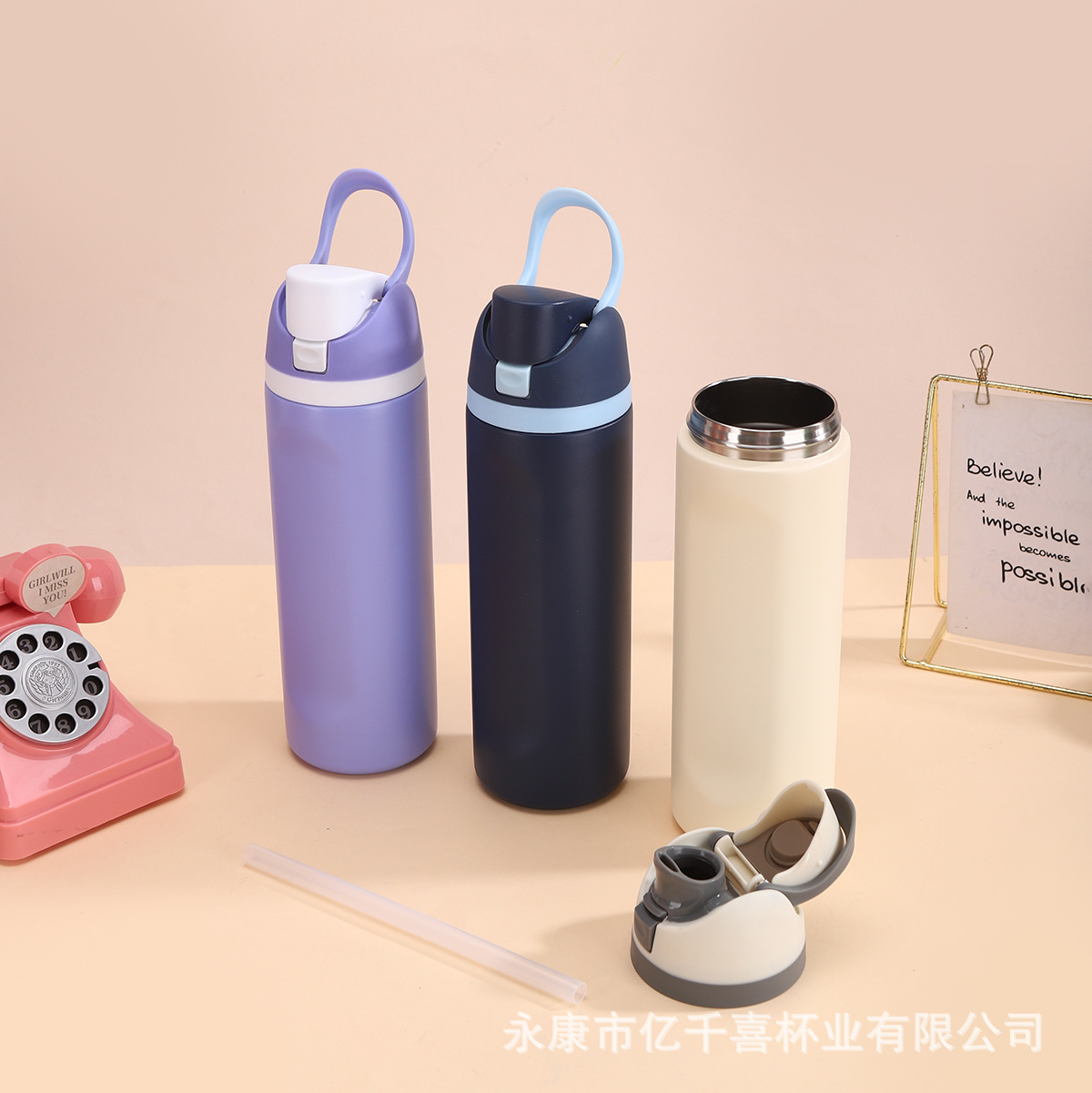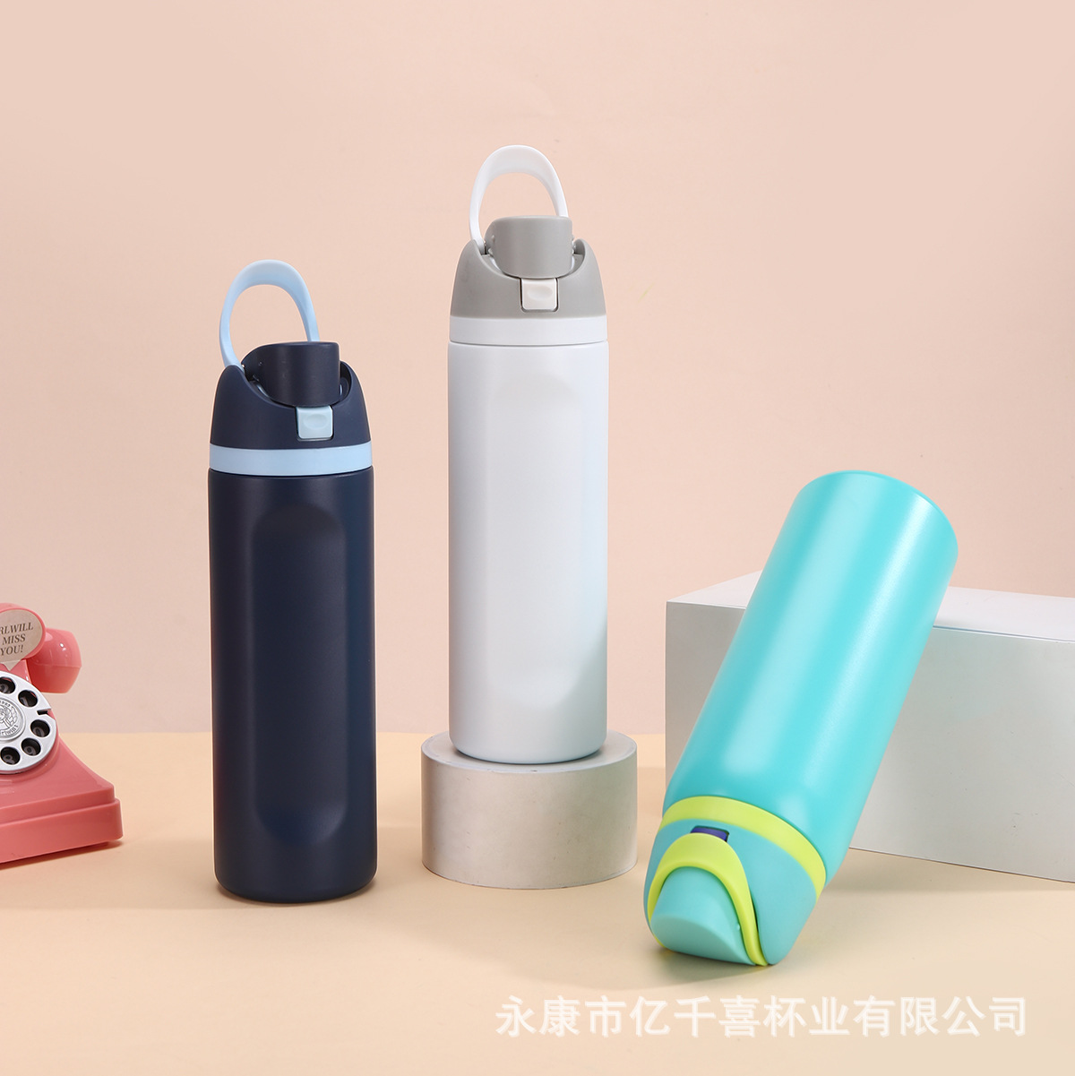 跨境简约高颜值弹跳杯不锈钢保温杯户外运动水杯提手双饮水果杯