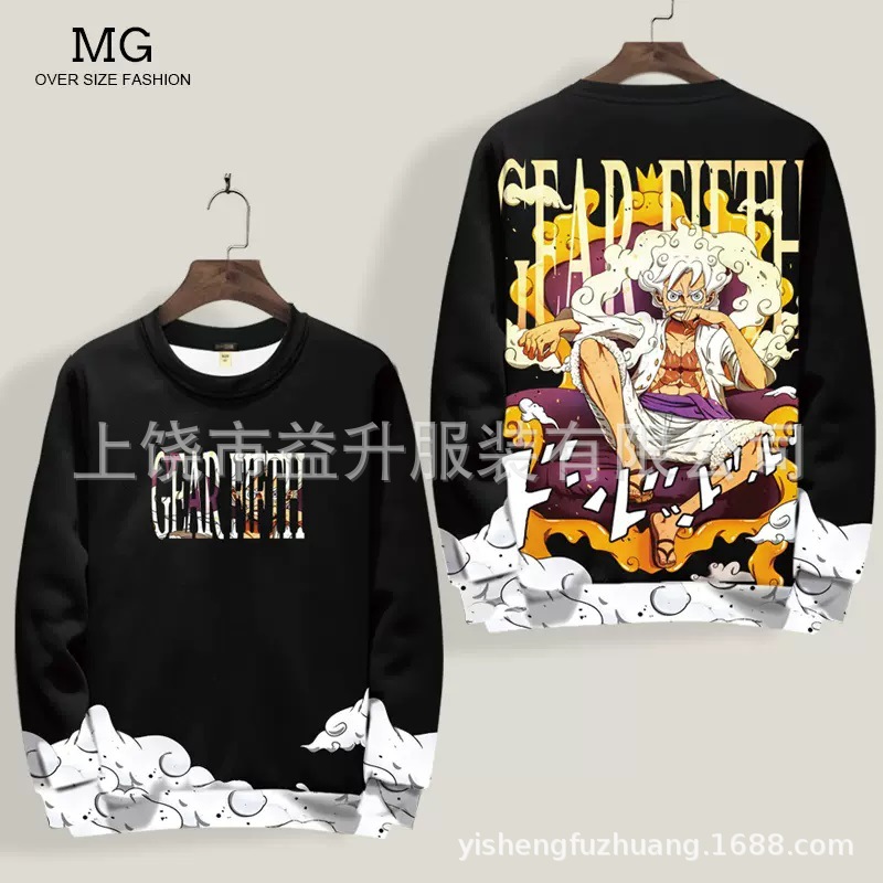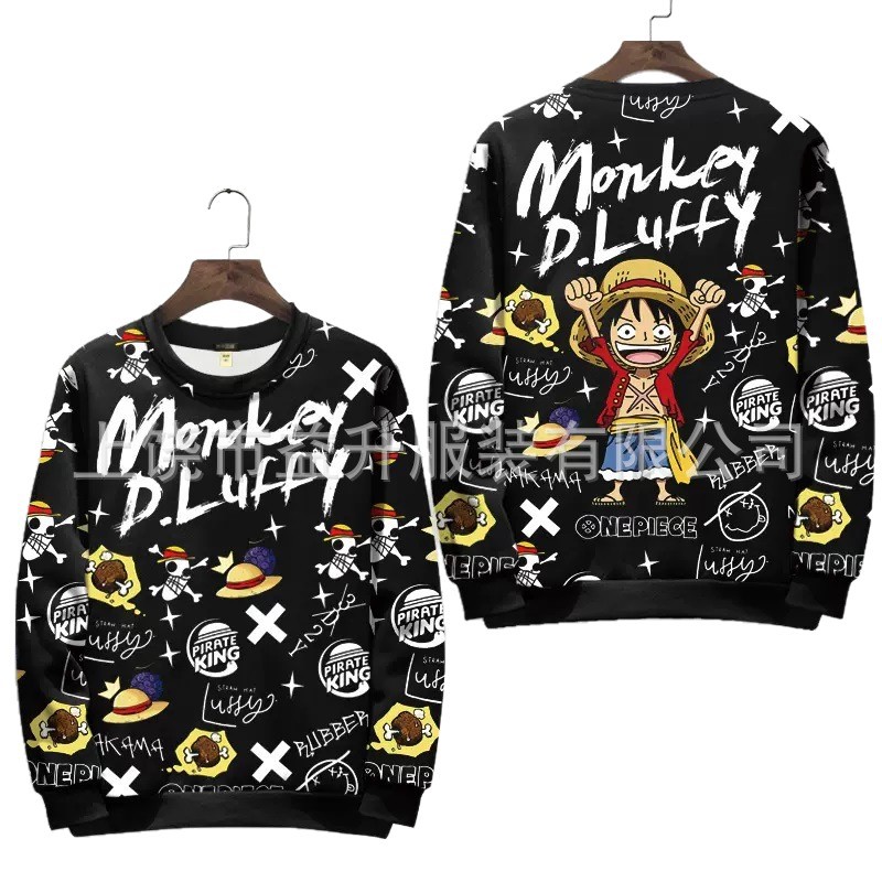 秋季休闲百搭海贼王长袖圆领上衣 高街时尚舒适套头圆领男士卫衣