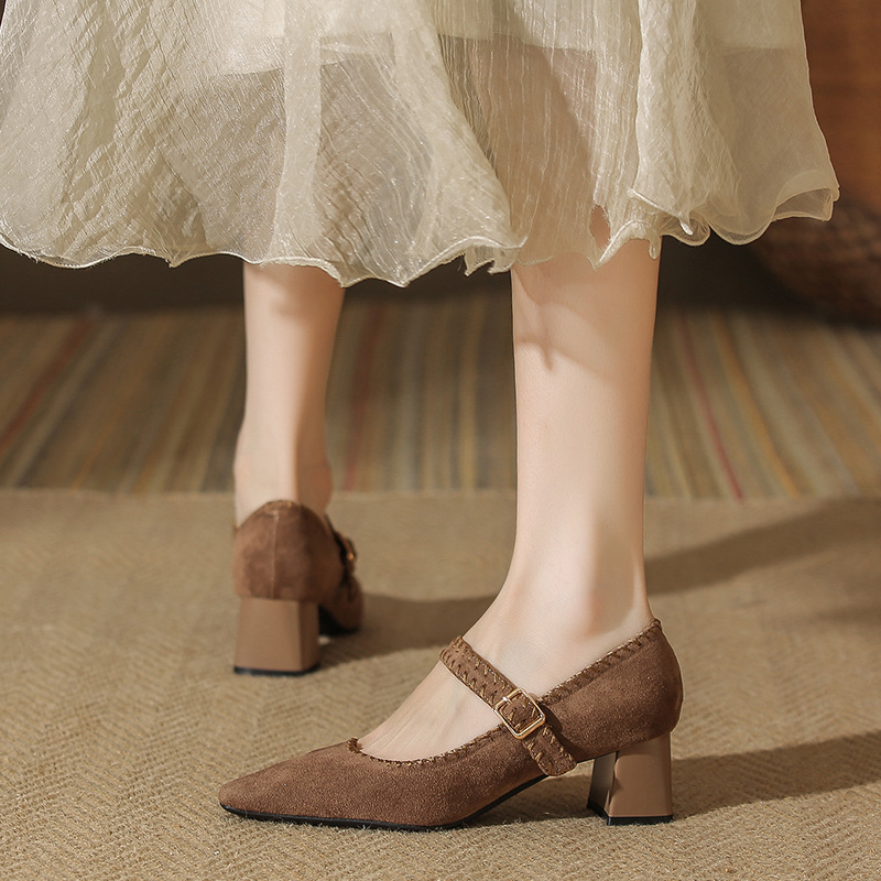 千履汇 复古佳人时尚气质粗跟玛丽珍一字带高跟鞋优雅古典旗袍鞋