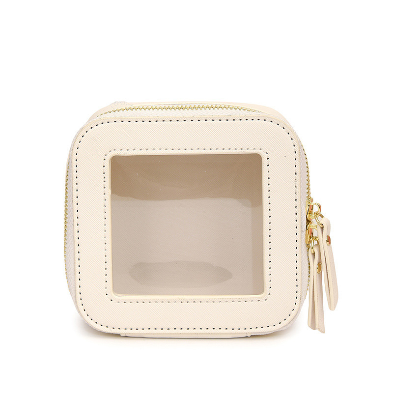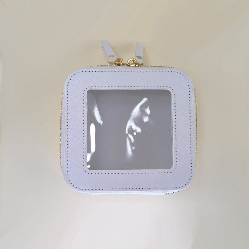 女士跨境亚马逊新款白色简约时尚透明化妆包口红收纳包小手拿包