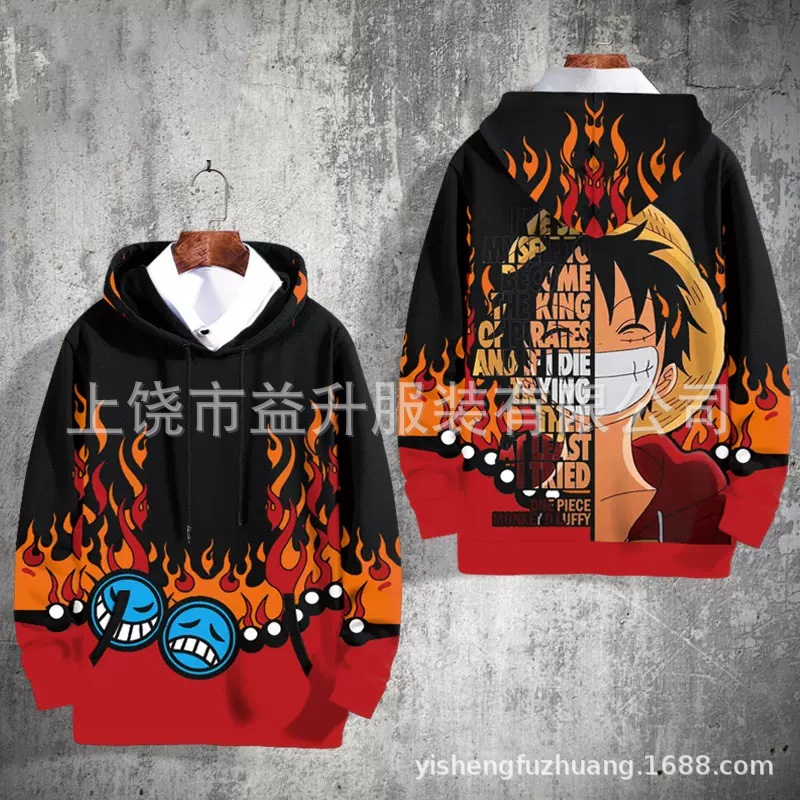 2025秋季新款海贼王动漫周边男士连帽卫衣时尚休闲印花运动上衣