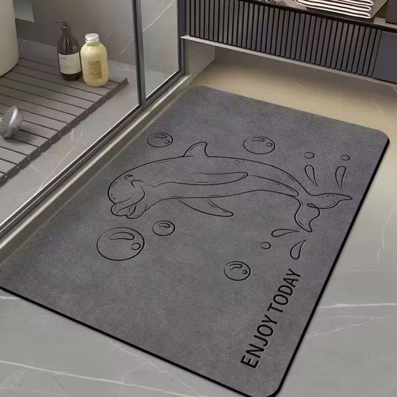 轻奢灰硅藻泥浴室垫简约家用装饰浴室厕所玄关门口吸水防滑蹭脚垫
