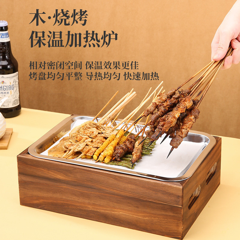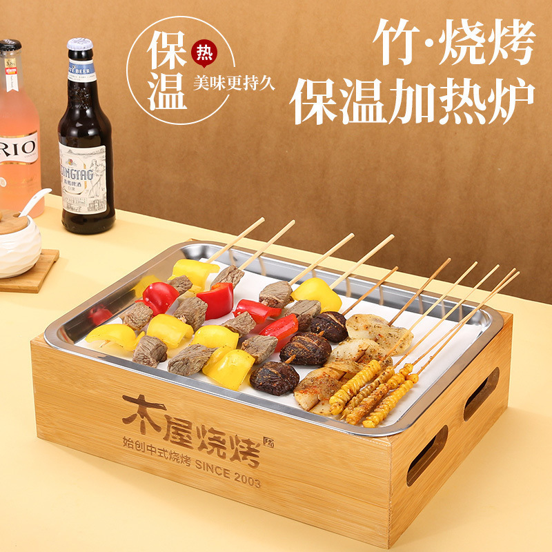 烧烤保温炉不锈钢烤串盘子热串商用刻字可订logo餐厅蜡烛加热炉新