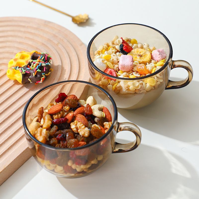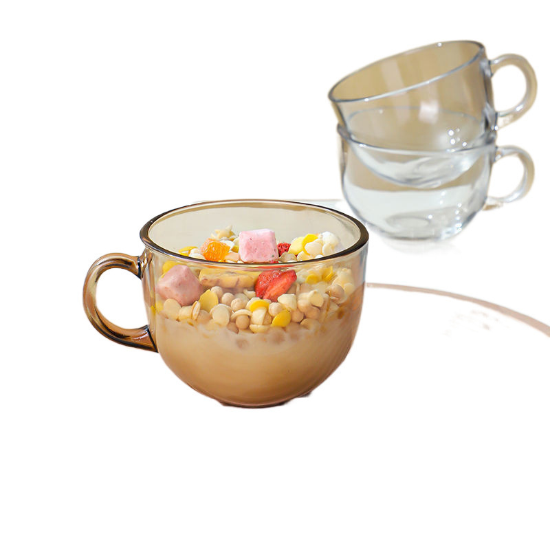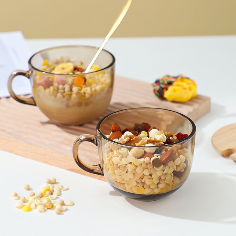 玻璃早餐杯大容量带勺带盖茶色牛奶家用燕麦酸奶带把手咖啡杯其他