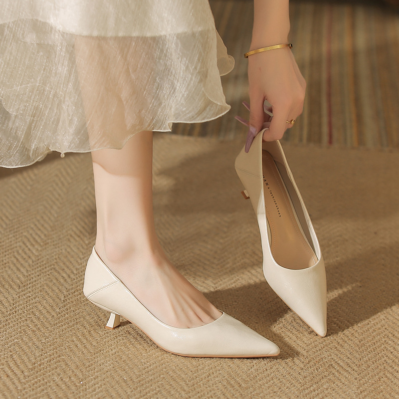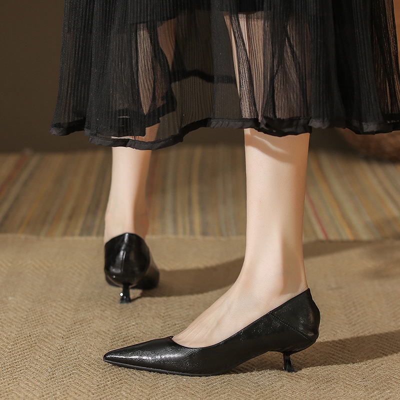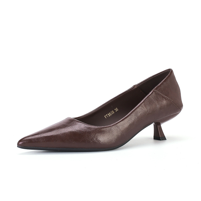 千履汇 油蜡软皮细跟尖头复古风秋季单鞋惠东源头直供气质高跟鞋