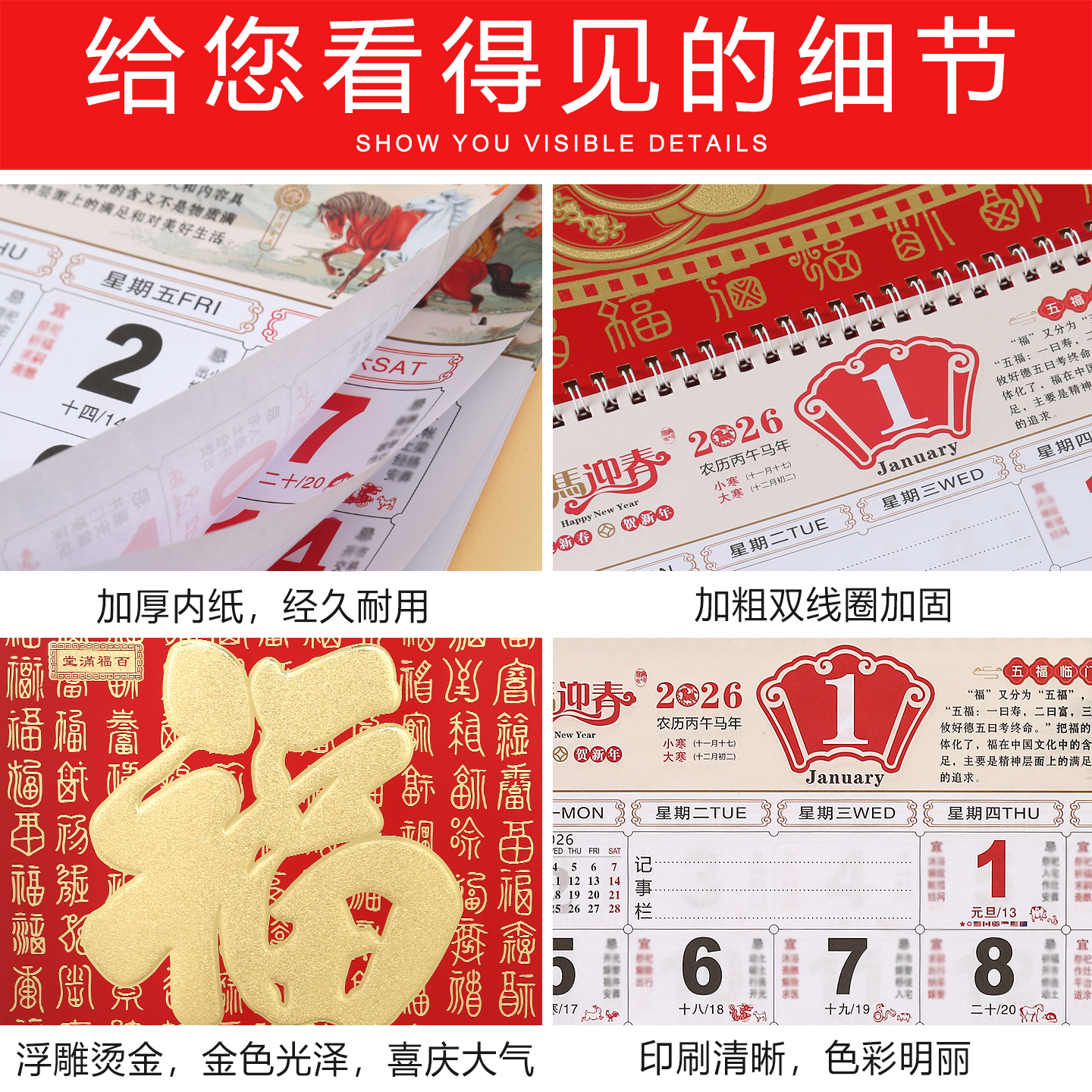 2026年金箔字挂历公司广告烫金创意月历撕历中国风福字吊牌