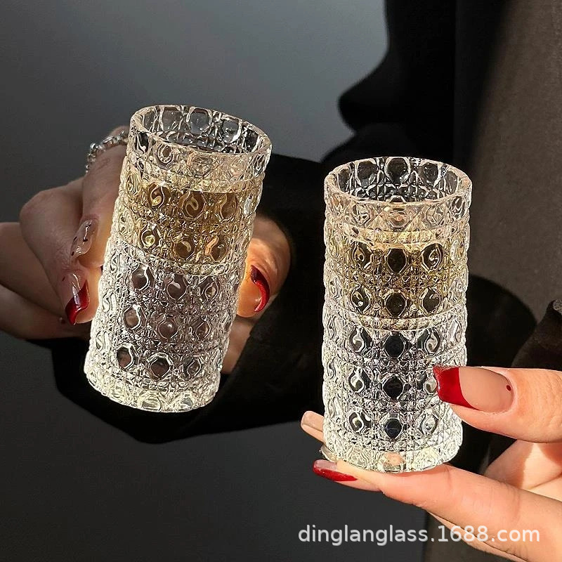 新款轻奢防摔防爆加厚玻璃白酒杯酒盅小号家用单层烈酒宝石纹